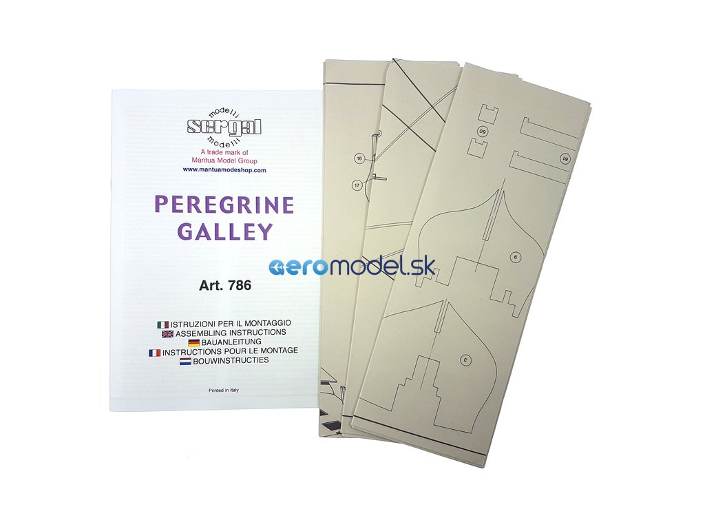 Stavebnice neplovoucího modelu lodi Peregrine Galley v měřítku 1:60. Detailní model lodi z roku 1700, sloužící k plavbě mezi Anglií a americkými koloniemi. Délka modelu 92 cm. Pro větší odolnost a stabilitu, obsahuje kit dvojité plaňkování. Jako příslušenství lze k modelu dokoupit sadu plachet.