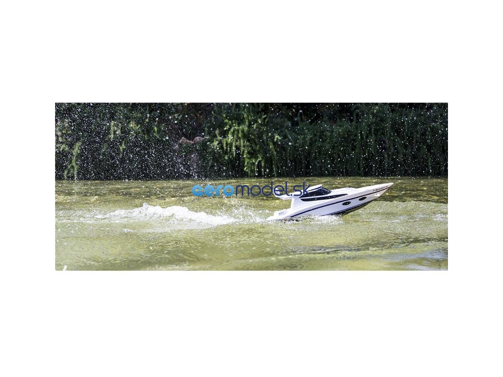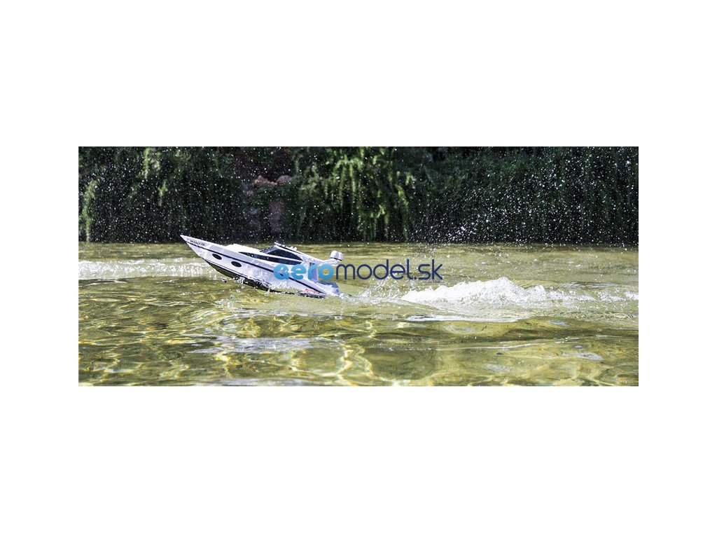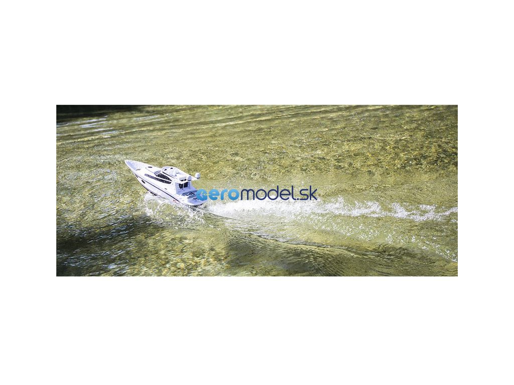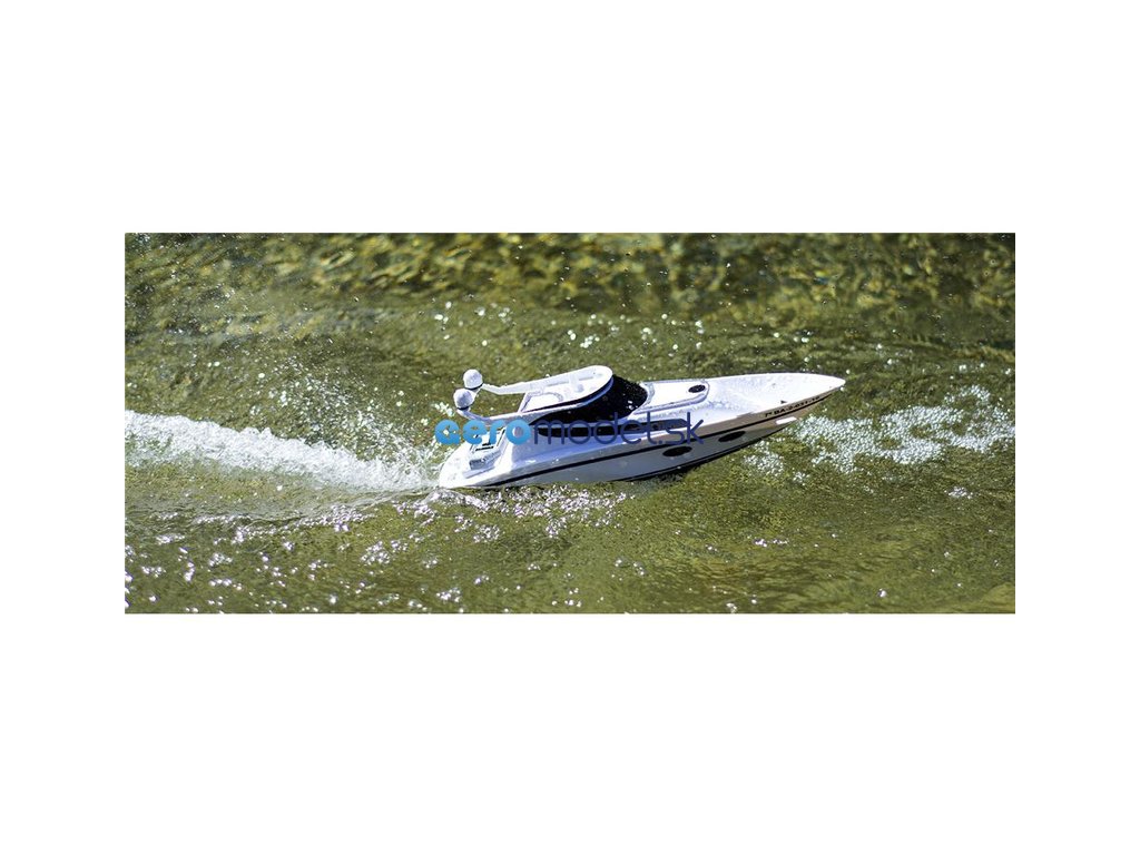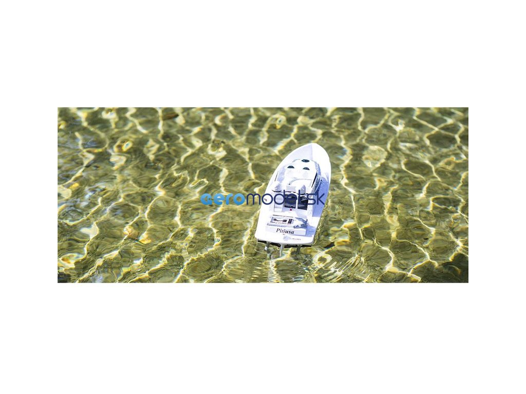 Veľmi dobre ergonomicky navrhnutý vysielač s volantom pracuje na frekvencii 2,4 GHz. Vďaka tomu nedochádza k žiadnemu rušeniu. Veľký dosah 30 metrov. Modro-čierne námornícke farebné vyhotovenie a veľký volant. Má tieto funkcie: plavba vpred, vzad a zatáčanie doľava, doprava. Neutrálnu polohu kormidla možno jemne nastaviť pomocou trimu na korme.