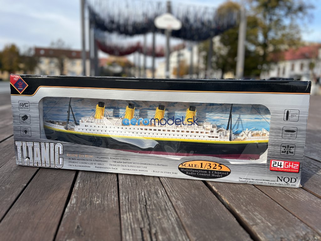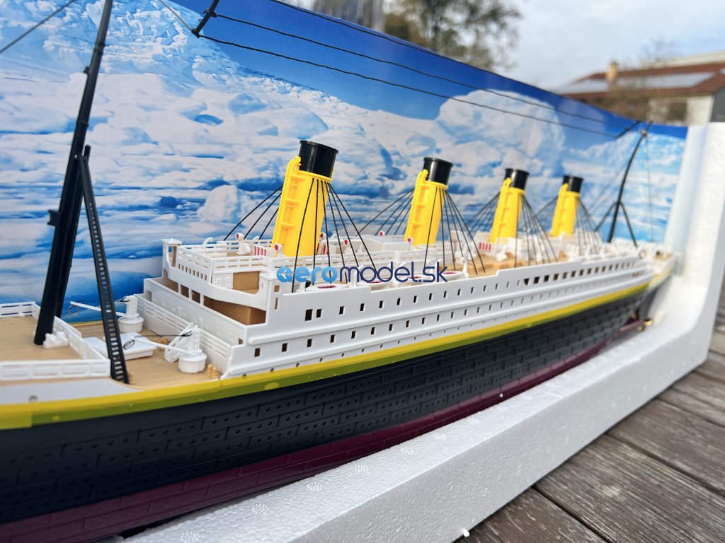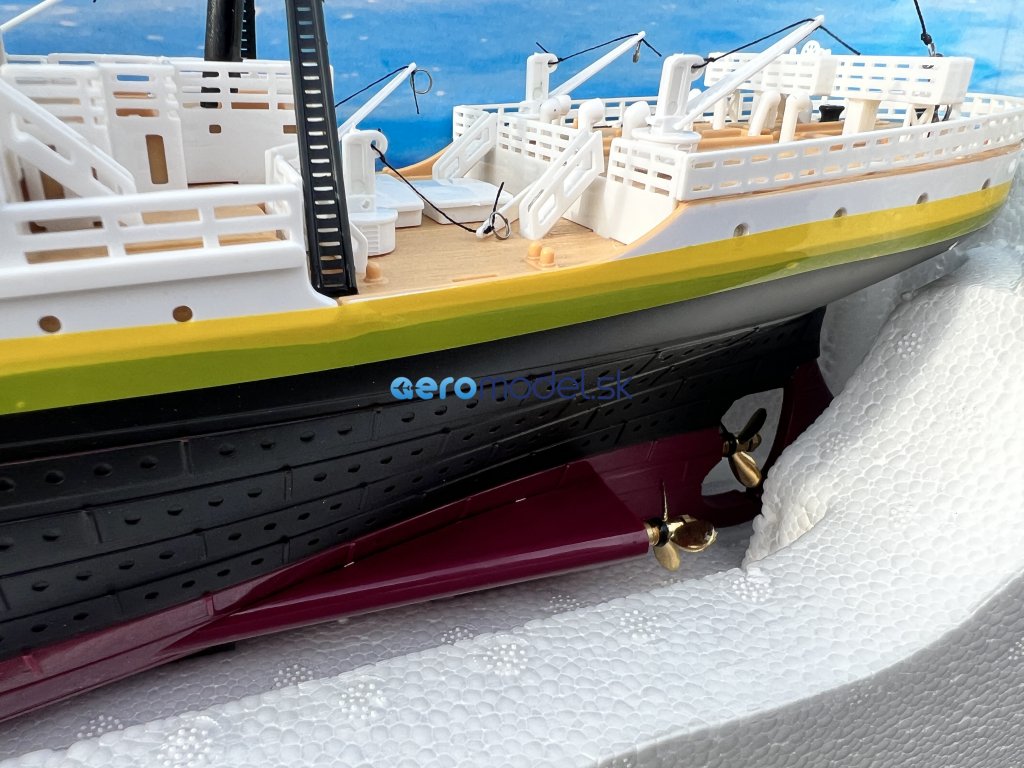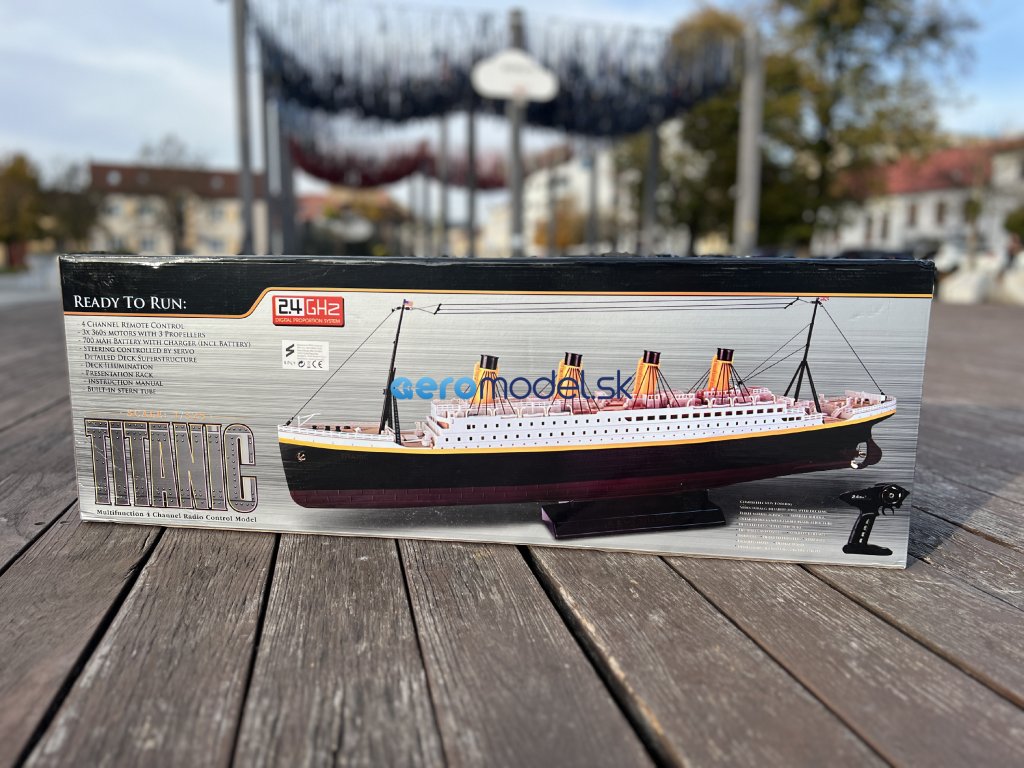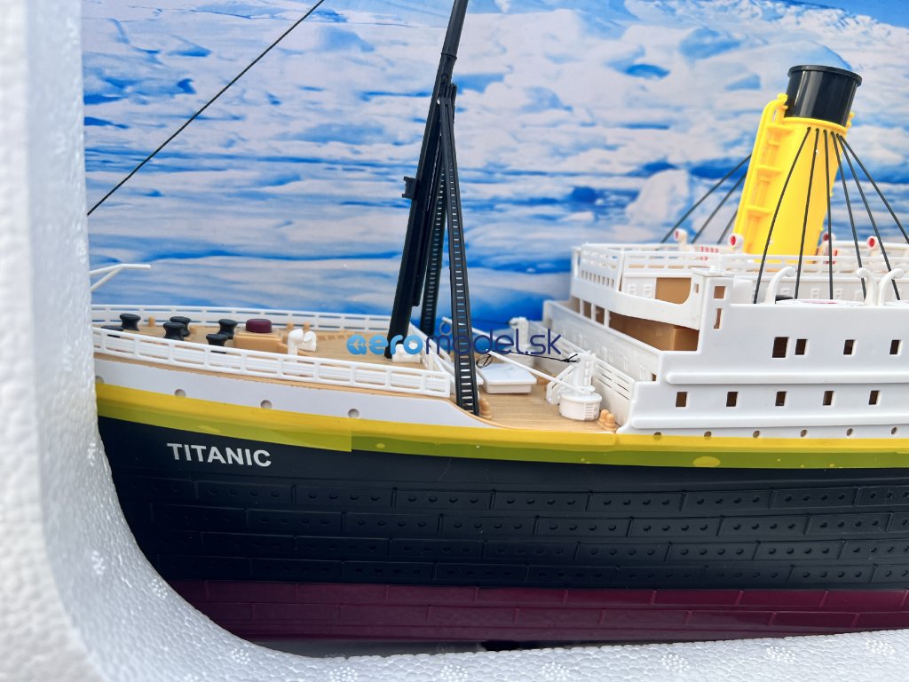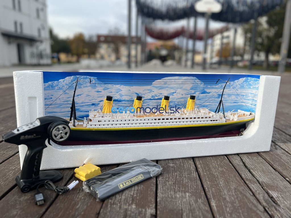 Nádherný RC model TITANICU. Plne funkčný 80-centimetrový model. Na vode pôsobí majestátne a stabilne, je vybavený osvetlením vnútorných priestorov a komínov.