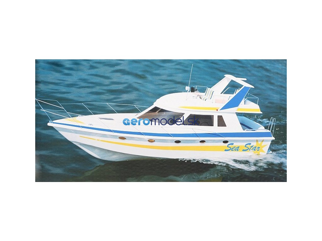 Moderní luxusní motorová RC jachta délky 890 mm.