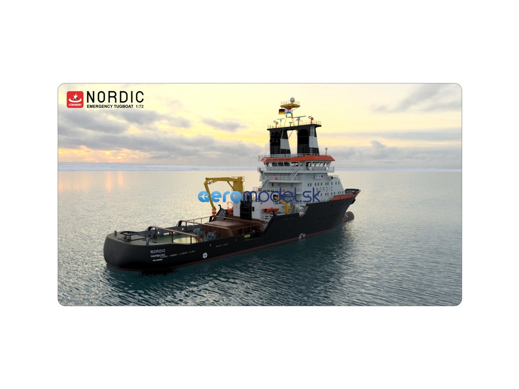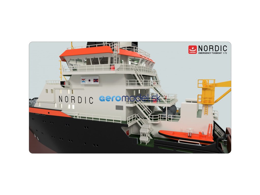 Stavebnice modelu lodi záchranného remorkéru Nordic v měřítku 1:72 s délkou 108 cm. Stavba lodi vhodná pro zkušené modeláře. Maketa byla navržena podle originálních výkresů, včetně detailních prvků. Model obsahuje dřevěný překližkový trup doplněný o lišty z Abachi. Dřevěné díly jsou přesně a čistě laserem řezané. Dále model obsahuje kvalitní resinované 3D díly. Hlavní můstek a obytné kajuty májí kompletně vybavený interiér. Stavebnice je navržena jako statický model, lze jej však sestavit jako plovoucí model a doplnit o pohonnou sadu a elektroniku s RC soupravou. (Není obsahem balení).