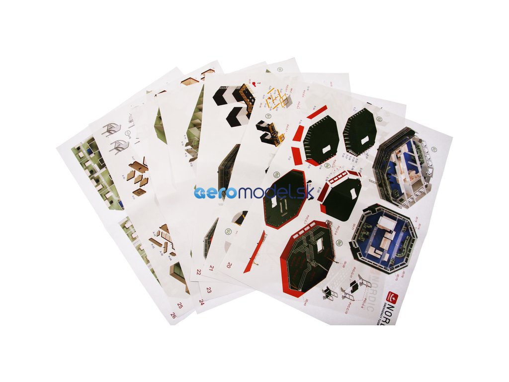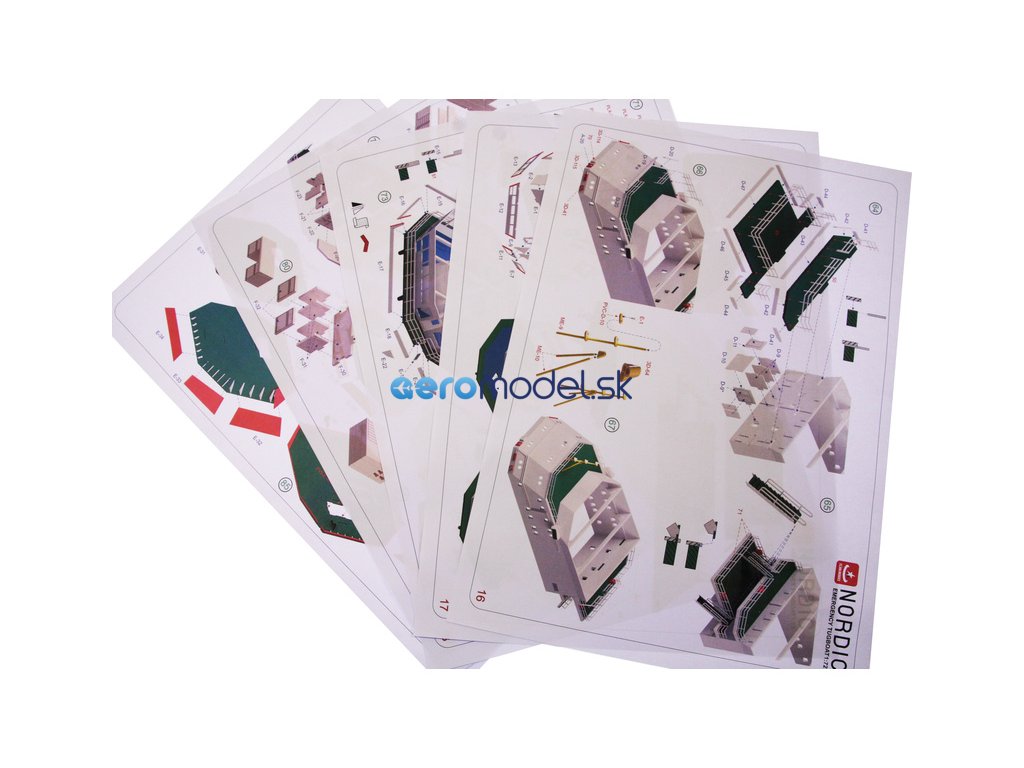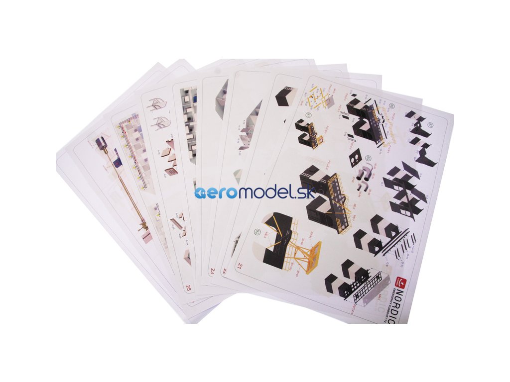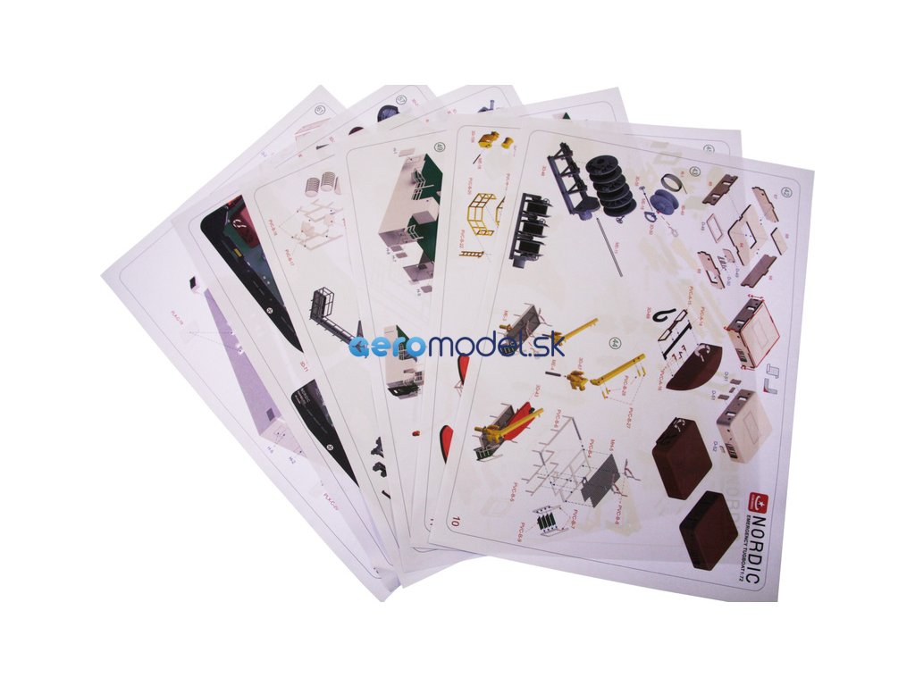 Set obsahuje kompletní sadu výkresové dokumentace modelu s obrázky jednotlivých detailů. Na výkrese jsou nakresleny montážní sestavy, jejich kompletace a to včetně drobných maketových detailů. Vícejazyčný postup stavby rámcově upravuje logické sestavení jednotlivých komponentů.