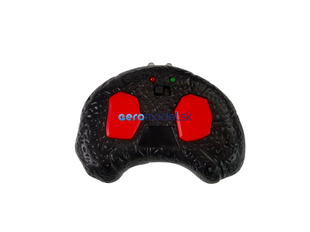 Čierny diaľkový ovládač obsahuje dve červené tlačidlá. Je infračervene riadený, v zadnej časti má senzor.