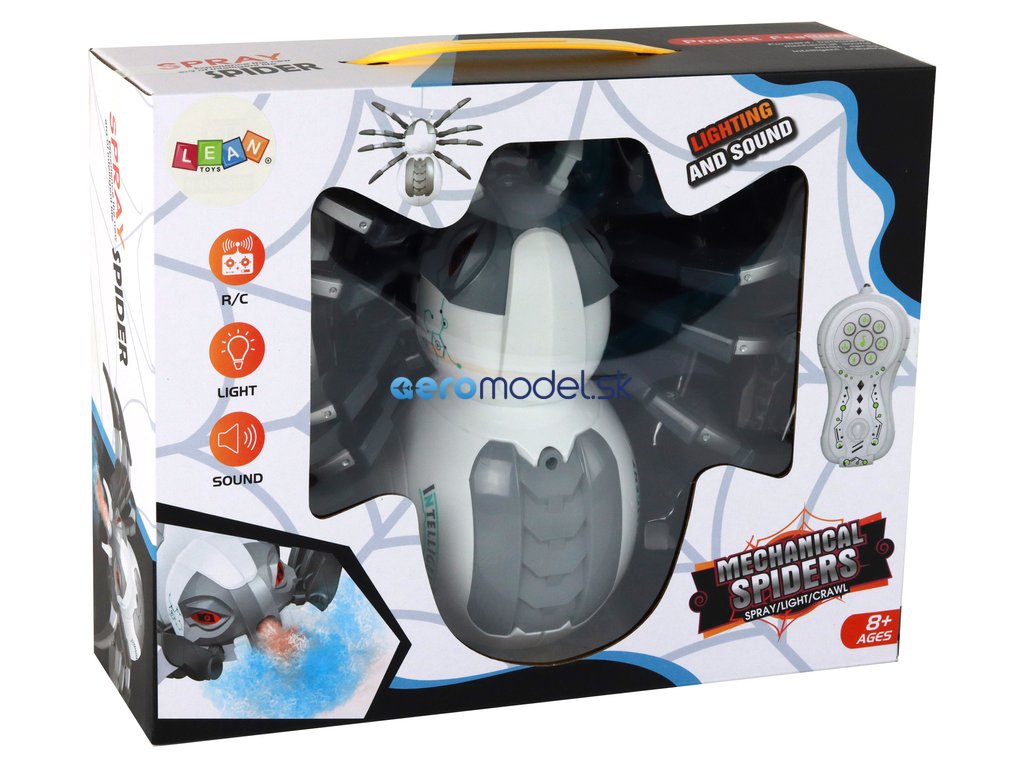Veľký RC pavúk na diaľkové ovládanie - čierno-biely, dym, zvuk