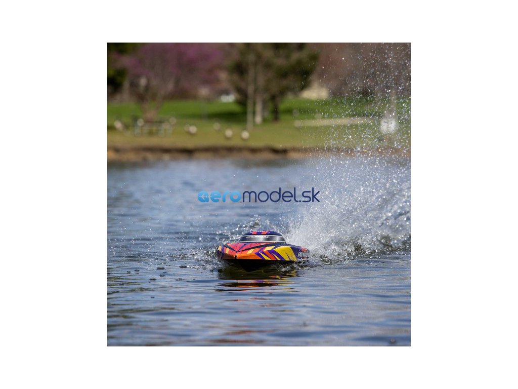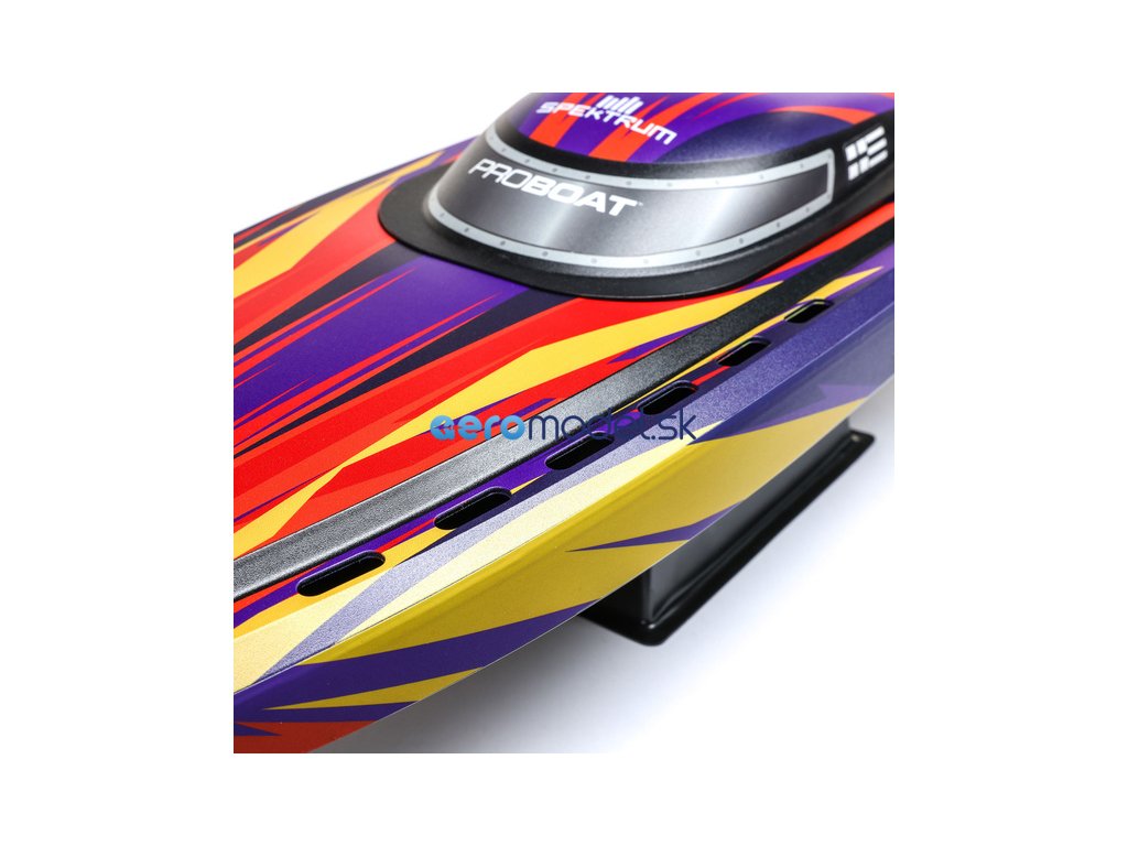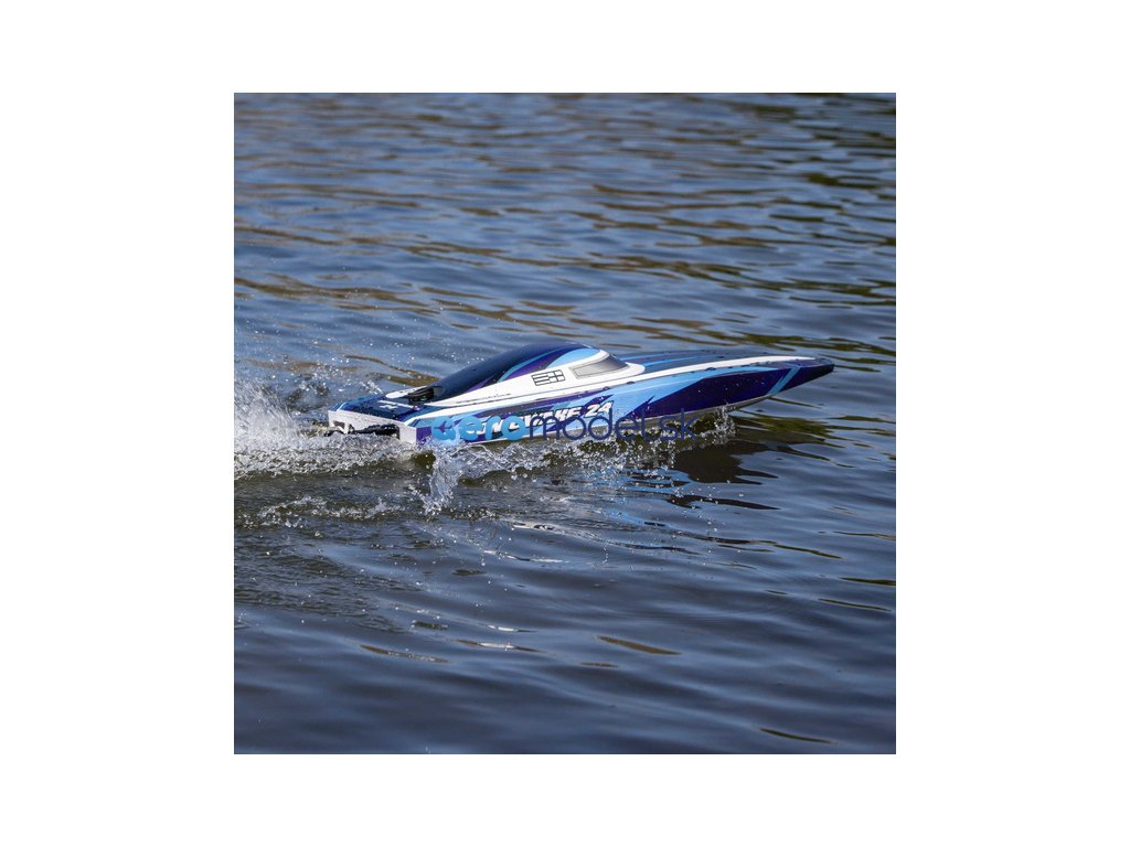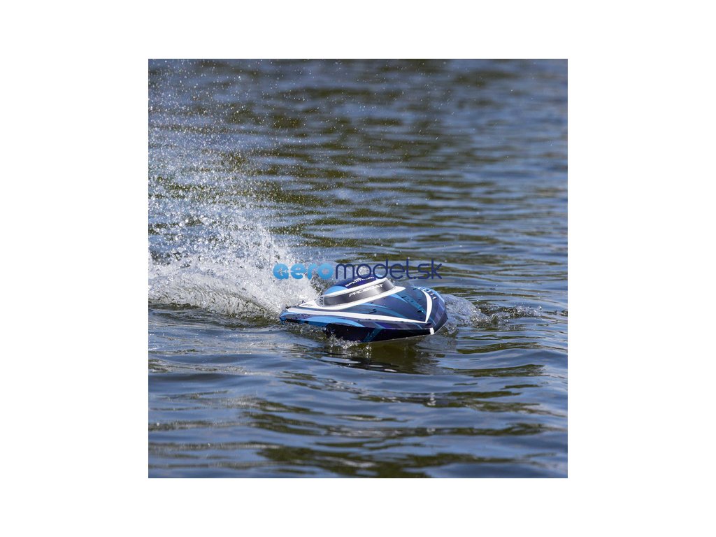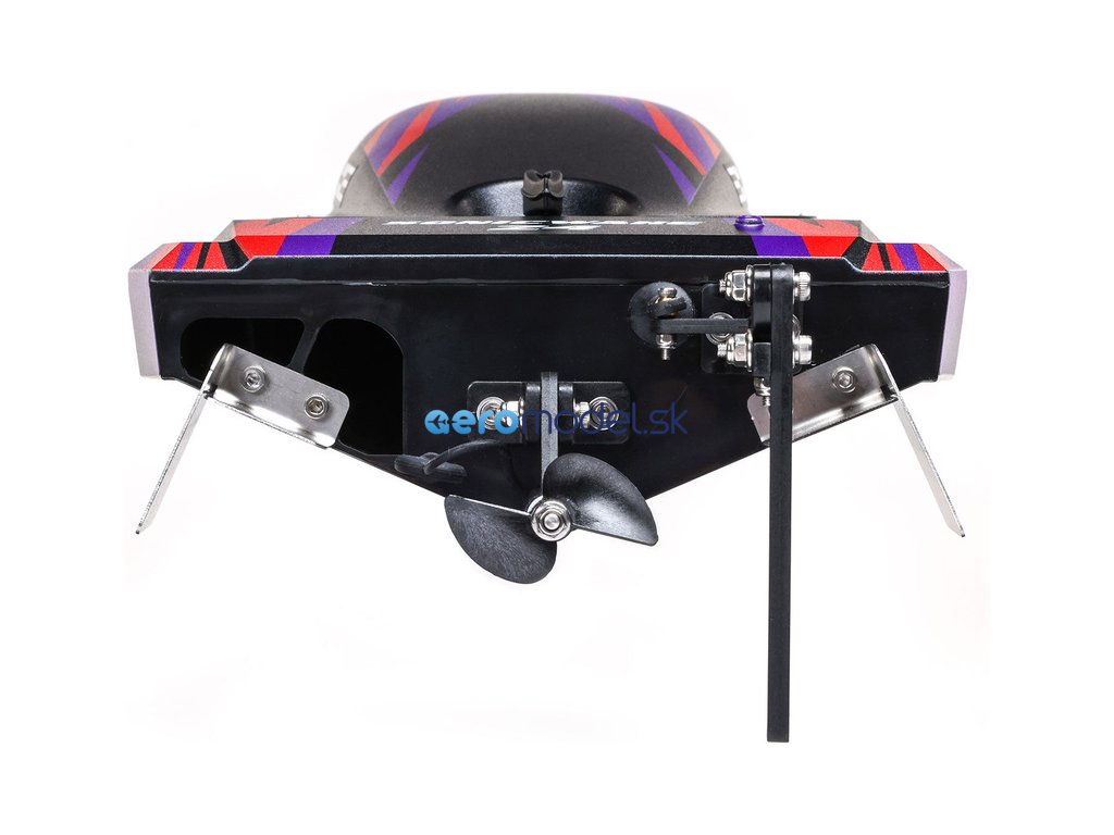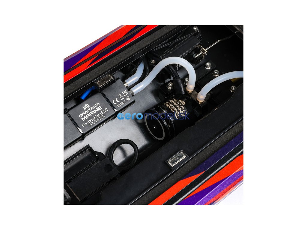 Srdcem modelu je vodou chlazený výkonný střídavý motor 3542 2500Kv typu outrunner a regulátor Spektrum 50A Marine. Elegantní, aerodynamický trup ve tvaru V snadno projede vlnami a je vyroben z odolného ABS materiálu. Součástí trupu je zaplavovací komora, která se při převrácení modelu během pár sekund zaplní vodou, čímž dojde k automatickému otočení (funkce Self-righting) a vy se tak můžete rychle vrátit zpět do akce. V případě, že při jízdě zavadíte o kámen či dno, kormidlo se odklopí, místo toho, aby se zlomilo. Stačí jej pouze zatlačit zpět na místo a utáhnout. Snadná je také výměna akumulátoru, který se upevňuje suchým zipem do posuvného držáku SSL (Strap, Slide, Lock). Přiložený akumulátor nabijete obsaženým USB-C nabíječem s automatikou. Pro napájení nabíječe můžete použít libovolný USB-C adaptér (není obsahem balení).