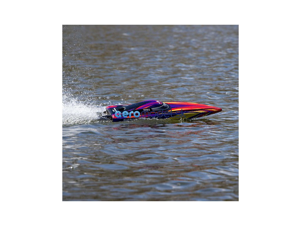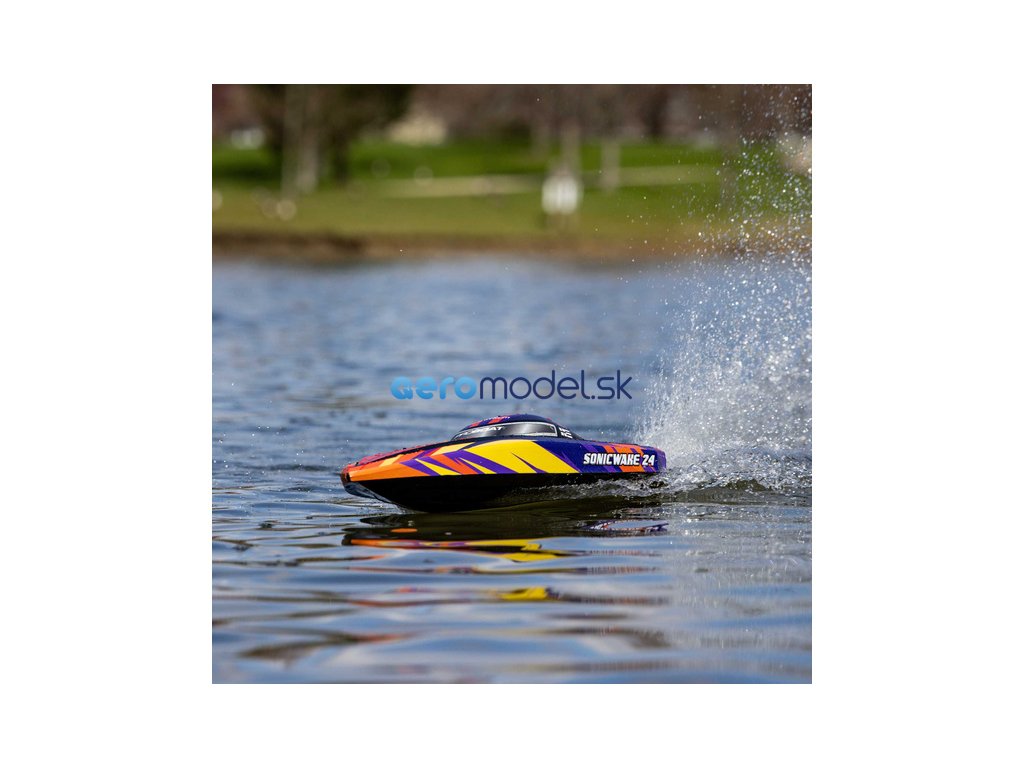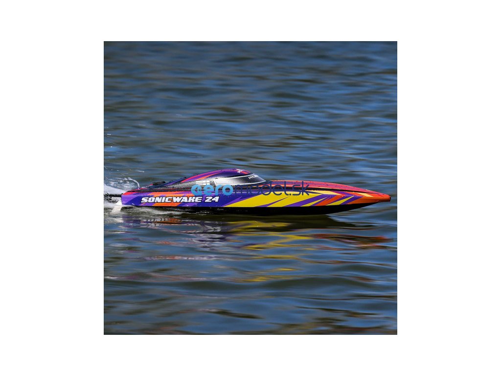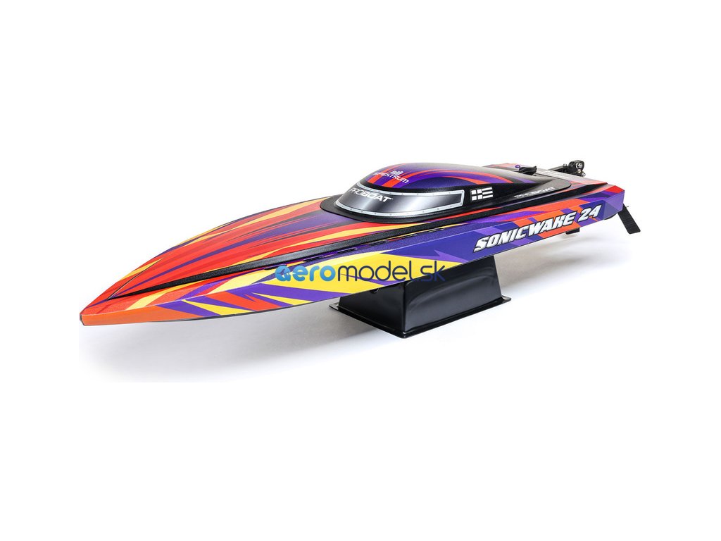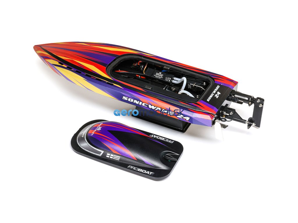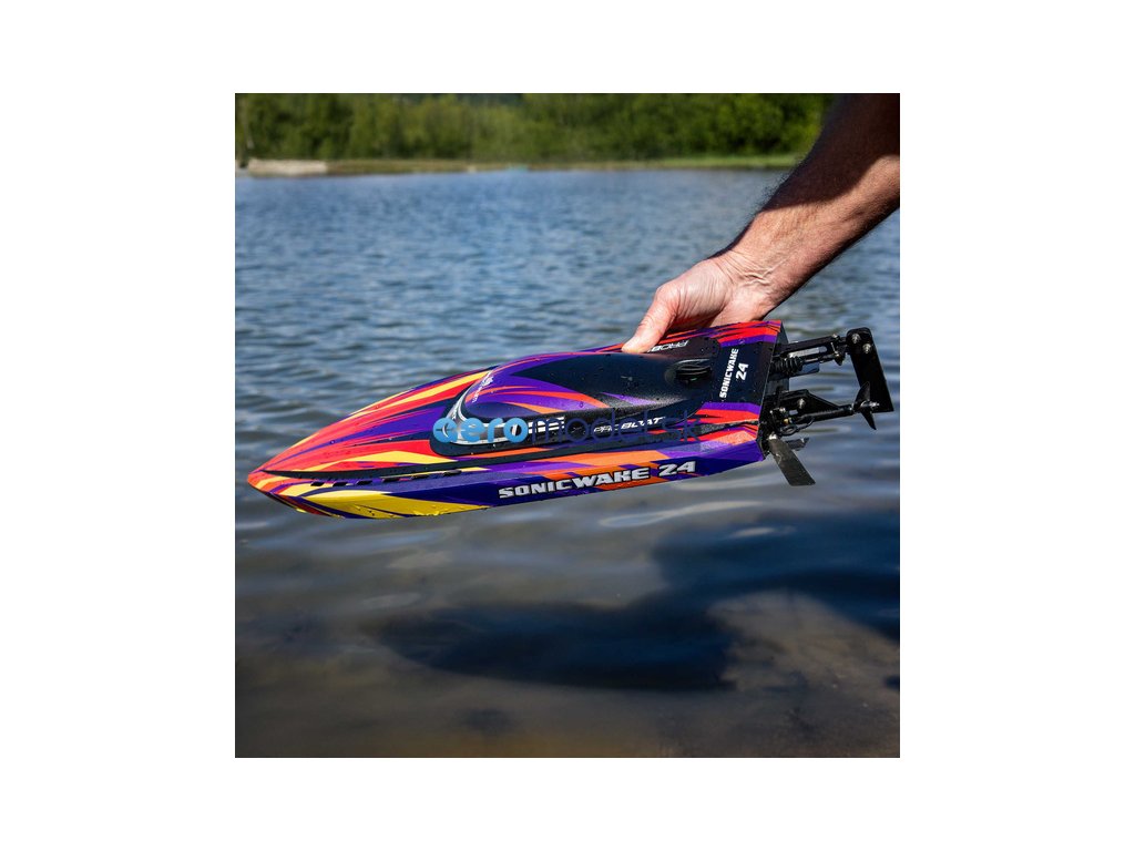 Rychlostní člun Proboat Sonicwake 24" vychází z osvědčených vlastností větších lodí řady Sonicwake a přináší pořádnou porci cenově dostupné zábavy i do kategorie středně velkých RC modelů lodí. Díky tomu je loď vhodná jako první RC člun pro začátečníky, kteří chtějí zažít výkon a vzrušení. Oslní také zkušené RC řidiče, díky svým funkcím a rychlosti až 56 km/h. S délkou 61 cm má Sonicwake větší rozměry než bazénové lodě, ale přesto nutně nepotřebujete k jízdě velkou vodní plochu. Malý rybník nebo podobné místo nabízí veškerý prostor, který potřebujete. Mezi hlavní výhody modelu patří výkonný střídavý pohon, obsažená funkce automatického otočení při převrácení (Self-righting) a precizní zpracování značky Proboat, které zajišťuje dlouhý a pohodlný provoz s podporou náhradních dílů. V balení je navíc obsaženo vše potřebné pro provoz, včetně pohonného LiPo akumulátoru a USB-C nabíječe.