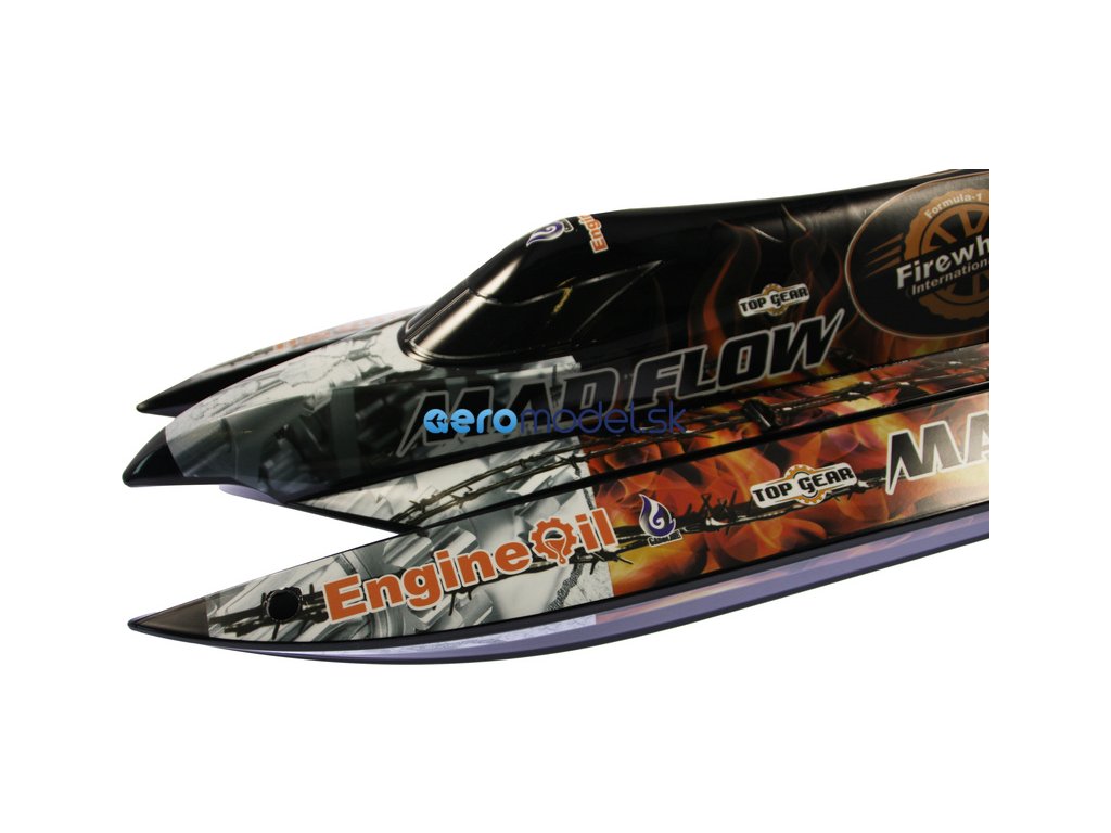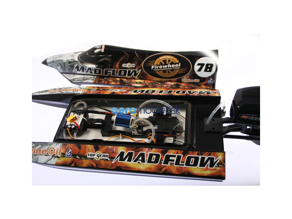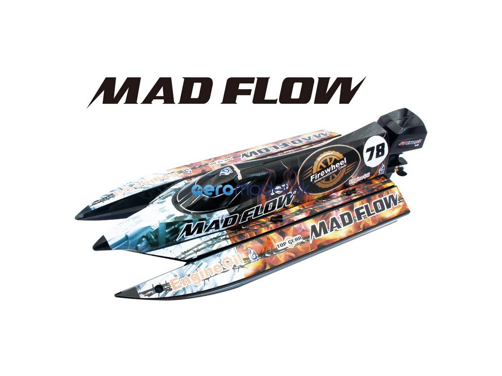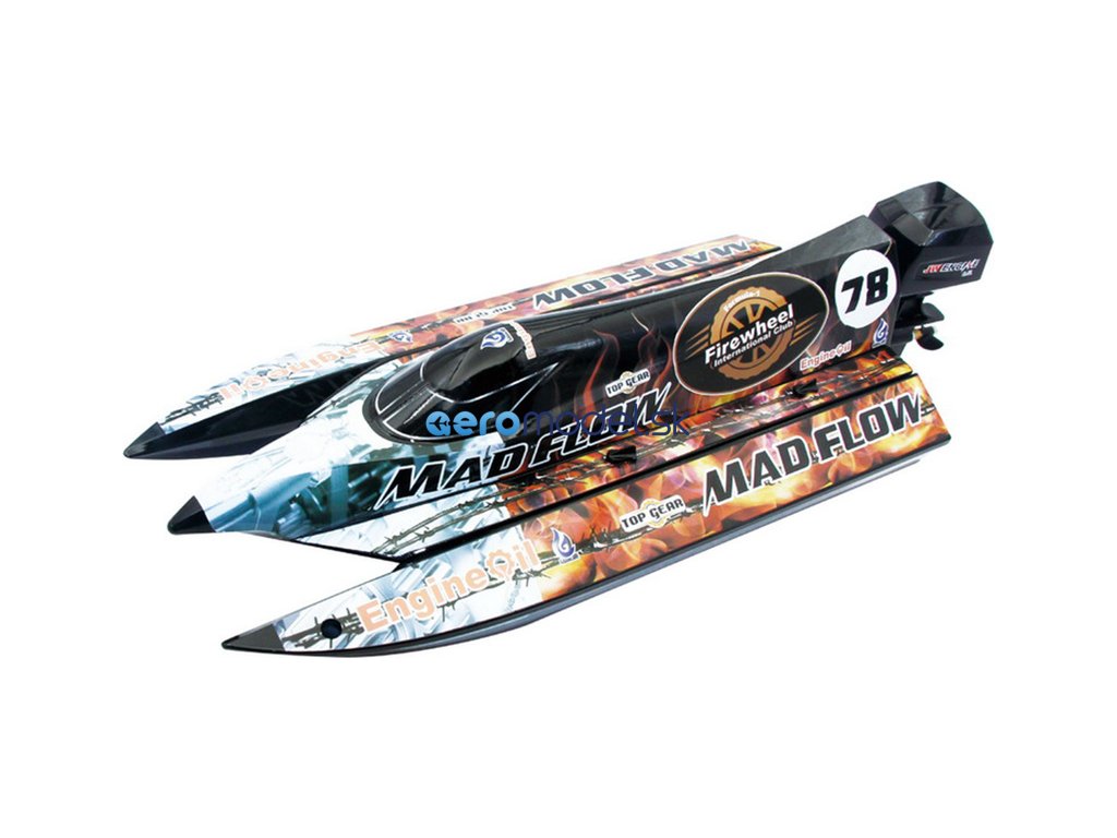 Rýchlostný čln Mad Flow Brushless V3 je kompletne zostavený model člna s maketou závesného motora. Odnímateľná paluba, vodou chladený striedavý motor, 9g servo riadenie a 2,4GHz RC súprava. Je potrebný voliteľný LiPol akumulátor 2S-3S 2200mAh 35C a nabíjačka.