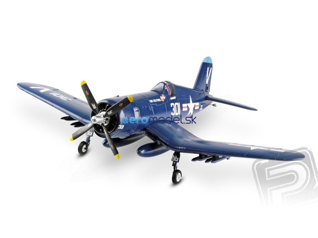 Corsair, stejně jako ostatní modely z naší řady Baby Warbirds je úhledný malý model z takřka nezničitelného extrudovaného polyolefinu (EPO) vhodný pro rekreační vydovádění. Jako výborný pokračovací model jej ocení každý, kdo již zvládl pilotáž letadla s ovládanými křidélky, a touží vyslat do vzduchu "opravdovou stíhačku". "Baby Warbirdy" jsou ideální modely "na zadní sedadlo auta", snadno přepravitelné - a dá se s nimi bezpečně létat na omezeném prostoru; dokonce ani nemusíte mít k dispozici asfaltovou vzletovou a přistávací dráhu. Díky tomu, že mají ovládanou i směrovku (což v této kategorii není zcela běžné), budete si moci vychutnat létání a všechny akrobatické obraty právě tak, jako je znáte od "dospělých" warbirdů.