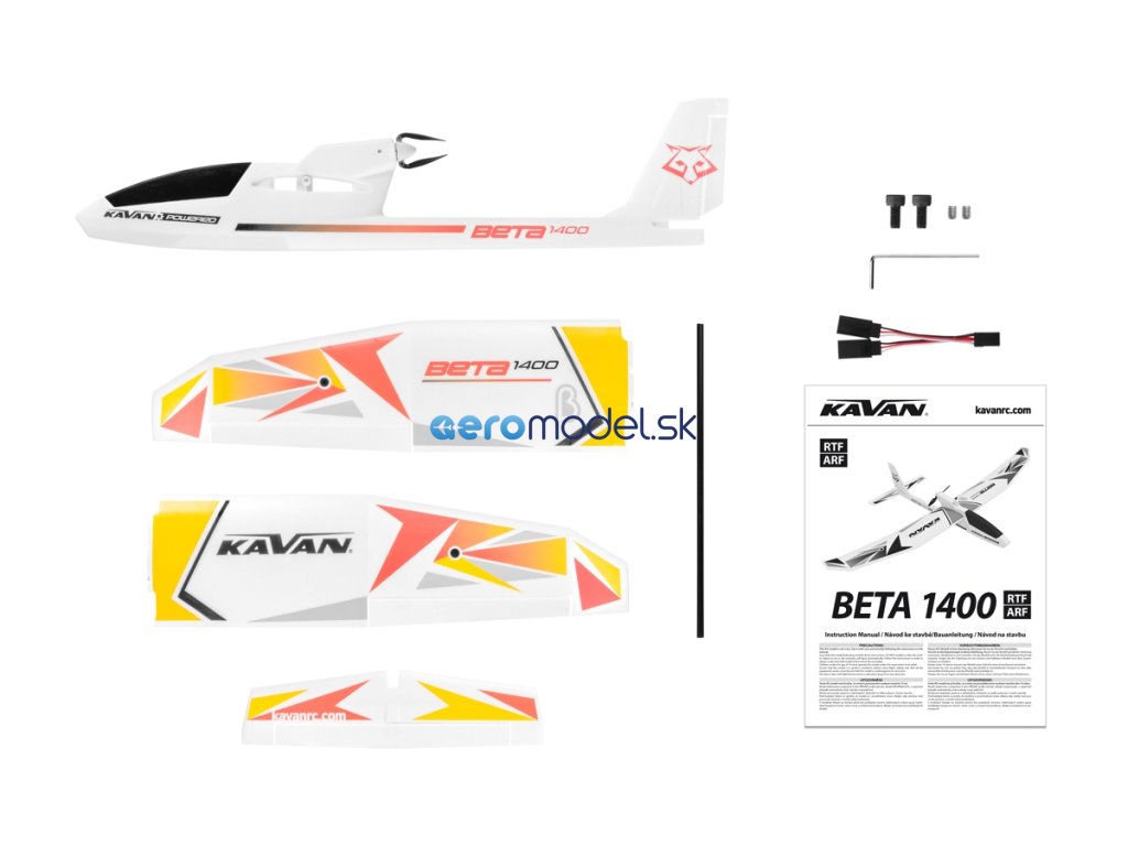 Ačkoliv vnějškově zachovává rysy původní BETY 1400, je BETA 1400 pod značkou KAVAN zcela nový model s mírně odlišnými rozměry, novým profilem křídla, novým střídavým motorem se sklopnou vrtulí a daleko propracovanější konstrukcí. Nové formy a pokrok v technologii lisování pěnových plastů zaručují, že všechny díly jsou daleko jemnější a přesnější. BETA 1400 - odolný školní a cvičný dříč - je ideální pro začínající piloty, které provede od úvodního otloukání přistávací plochy až k základním akrobatickým obratům a termickému plachtění. Stejně tak potěší rekreační víkendové letce, kterým poskytne skladný a snadno přepravitelný model pro dokonale relaxační polétání.