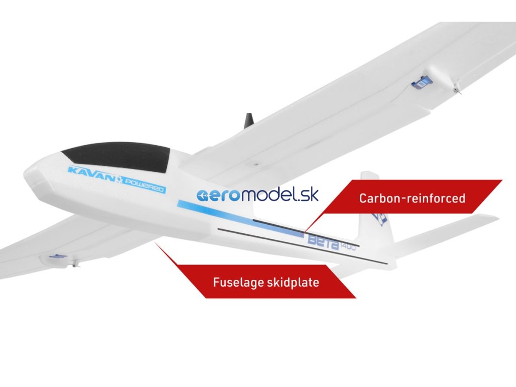Ačkoliv vnějškově zachovává rysy původní BETY 1400, je BETA 1400 pod značkou KAVAN zcela nový model s mírně odlišnými rozměry, novým profilem křídla, novým střídavým motorem se sklopnou vrtulí a daleko propracovanější konstrukcí. Nové formy a pokrok v technologii lisování pěnových plastů zaručují, že všechny díly jsou daleko jemnější a přesnější. BETA 1400 - odolný školní a cvičný dříč - je ideální pro začínající piloty, které provede od úvodního otloukání přistávací plochy až k základním akrobatickým obratům a termickému plachtění. Stejně tak potěší rekreační víkendové letce, kterým poskytne skladný a snadno přepravitelný model pro dokonale relaxační polétání.