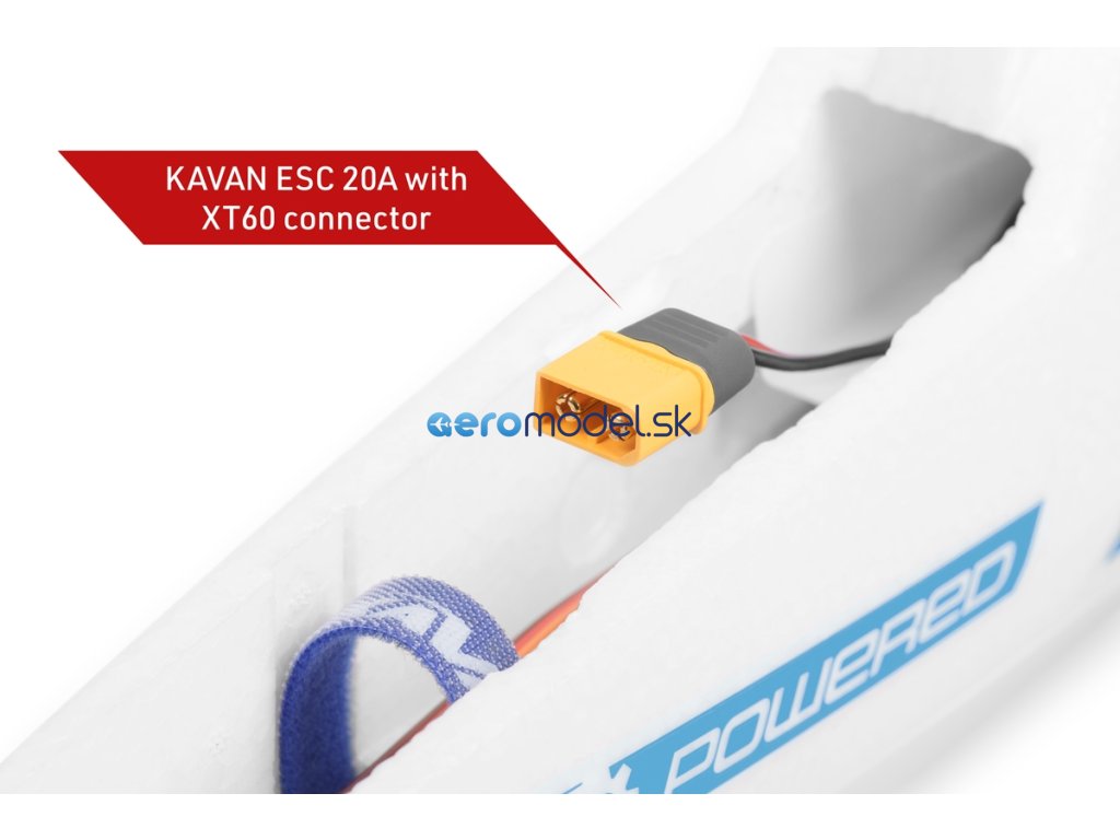 ARF set obsahuje: trup vylisovaný z EPO s namontovaným střídavým motorem, sklopnou vrtulí 7x6", regulátorem otáček KAVAN R-20B a 2 servy, křídlo vylisované z EPO s instalovanými 2 servy, ocasní plochy z EPO, uhlíkovou trubkovou spojku křídla a podrobný návod ke stavbě a létání.