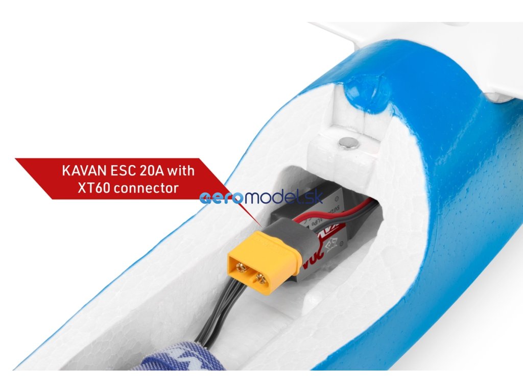 Přední část trupu modelu je zhotovena z vysoce odolného pěnového EPO (extrudovaného polyolefinu); ocasní nosník je tvořen uhlíkovou trubkou. V přídi je nainstalován střídavý elektromotor C2714-1450 se sklopnou vrtulí 7x6“ a regulátorem KAVAN R-20B s BEC stabilizátorem napájení. Kryt kabiny je odnímatelný, upevňuje se pomocí čepu vpředu a magnetu vzadu. V přídi najdete dostatek prostoru pro pohonný akumulátor a přijímač. Serva směrovky a výškovky jsou uložena v trupu pod křídlem, kormidla ovládají lanovody.