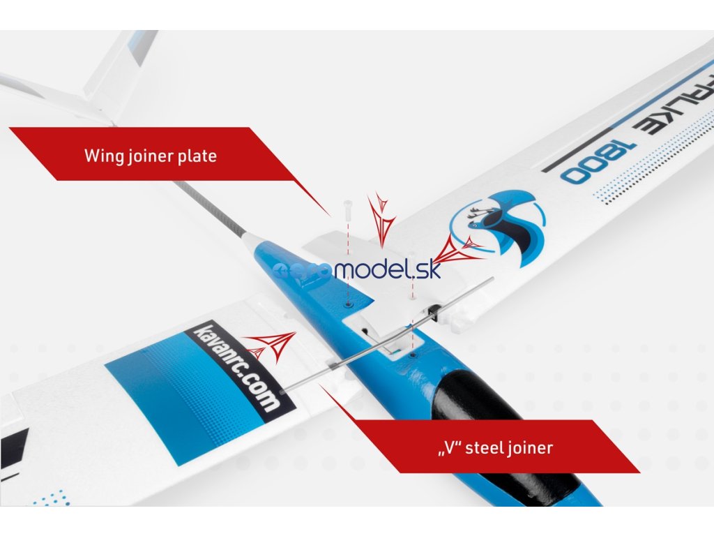 Odnímatelné motýlkové ocasní plochy jsou z rovněž z pěnového EPO, k trupu se upevňují plastovým šroubem.