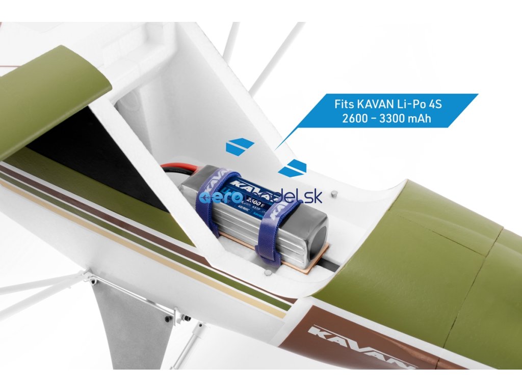 Trup modelu je zhotoven z vysoce odolného pěnového EPO (extrudovaného polyolefinu) s důkladnými vnitřními uhlíkovými výztuhami. V přídi je nainstalován střídavý elektromotor C3548-800 s třílistou vrtulí 10×6“ a regulátorem KAVAN R-50SB Plus s výkonným BEC stabilizátorem napájení potřebným pro napájení 6 serv na palubě. V přídi pod odnímatelným krytem najdete dostatek prostoru pro pohonný akumulátor.