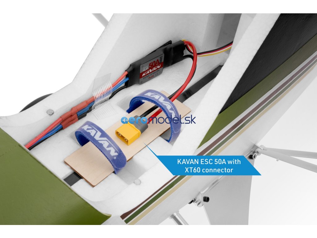 Pro pohon modelu slouží střídavý motor třídy C3548-800 s 50A regulátorem KAVAN R-50SB Plus.