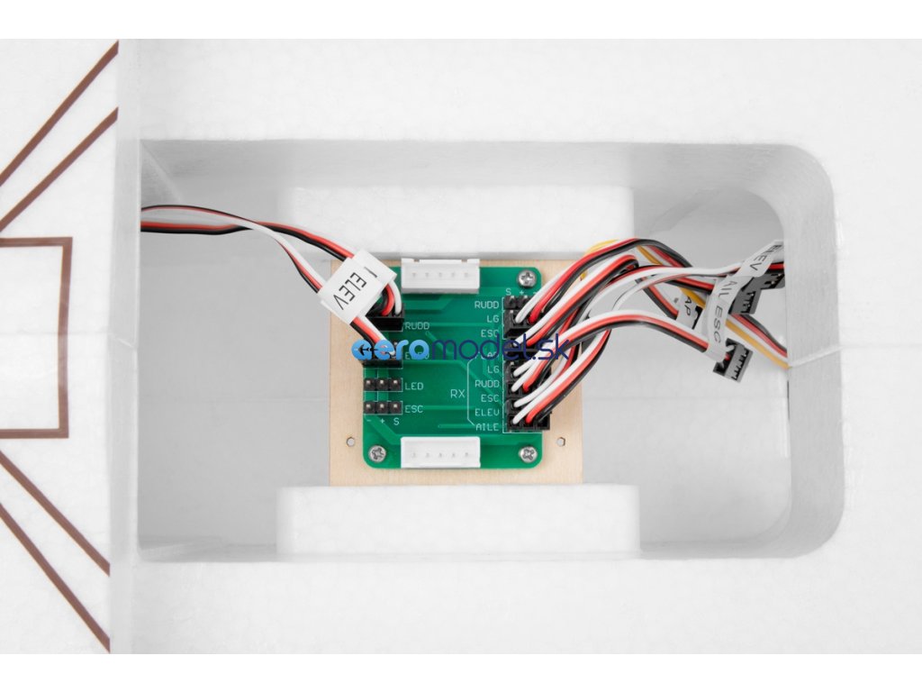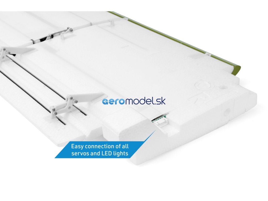 ARF set obsahuje: hotový trup, křídlo a ocasní plochy z pěnového EPO s nainstalovaným motorem, vrtulí, regulátorem, 6 servy a LED světly, návod.
