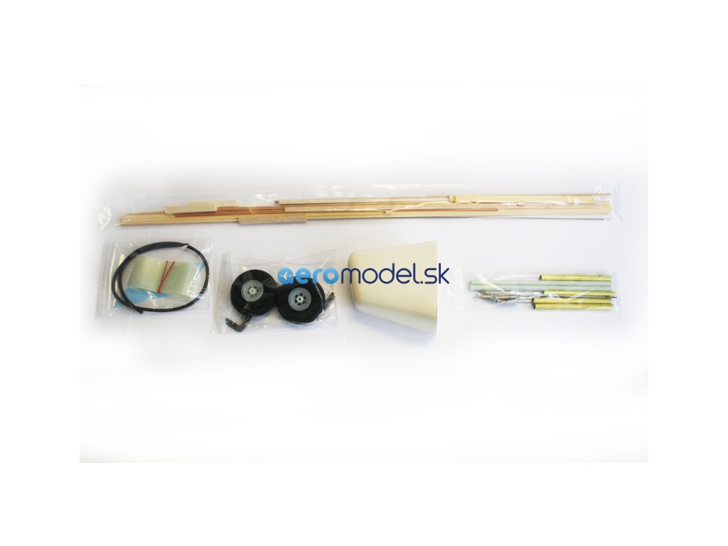 Ve stavebnici jsou potřebné součásti pro stavbu modelu, nejsou obsaženy elektronika, pohonná jednotka, lepidla, potah, nářadí, barvy, běžné příslušenství, fugurka pilota apod.