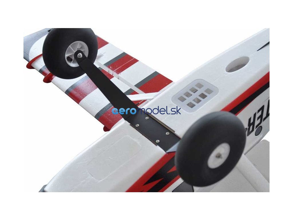 Podvozek je dvoukolý s vysokoprofilovými pneumatiky které poskytuji velmi dobré odpružení při přistáních a startech na hrbolatém terénu. Ostruhové kolo je řízené servem směrovky.