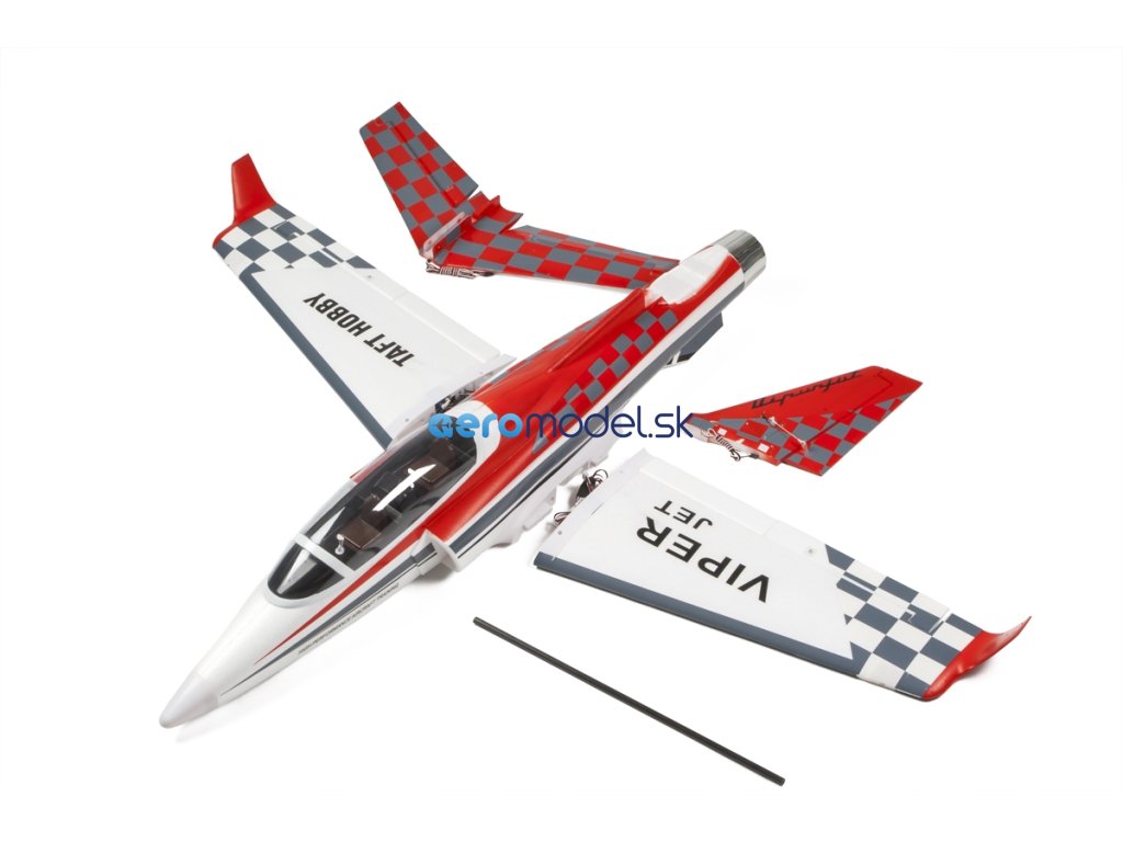 Sportovní „tryskáč“ Viper původně vznikl v 90. letech minulého století jako amatérský stroj poháněný tlačným pístovým motorem s mnohalistou vrtulí. Protože ale tvůrcům pořád chyběl tah, dospělo se v roce 2005 po několika přestavbách a zkouškách různých proudových motorů k provedení poháněnému motorem General Electric J85, se kterým byli už bratři Hanchetteové spokojeni. Aby ne, J85 pohání třeba lehký stíhací Northrop F-5 nebo bitevní Cessnu A-37 Dragonfly! Pokud nemáte cca 650 000 dolarů na zakoupení „dospělé“ stavebnice a volných 3500 hodin na stavbu, můžete to zkusit s naším ARF setem, jenž budete mít k letu připravený za dobu, kterou zabere nabití pohonného akumulátoru! Malý Viper sice nebude nadzvukový, ale na nějakých 150-170 km/h to vytáhnete bez problémů.