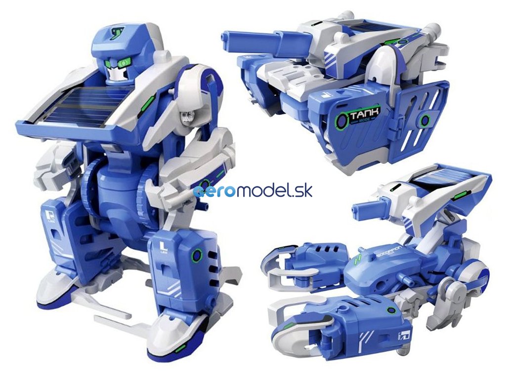 Solárny robot môže byť transformovaný do 3 rôznych modelov robotov, škorpiónov, nádrží. Hračka obsahuje unikát príslušenstvo (súčasť dodávky) a diely, ktoré zohľadňujú zakrytie pohybu robota. Alternatívne zdroje energie hrať tak dôležitú úlohu, nie je čas, aby ste sa teraz začali učiť základné technológie pre deti. Našťastie Tento produkt je napájaný zo slnka, takže nevyžaduje batérie. Robot sa pohybuje na úrovni slnečného žiarenia (silné slnečné svetlo alebo iný zdroj svetla) a umožňuje deťom vytvárať a používať svoju nekonečnú fantáziu.
