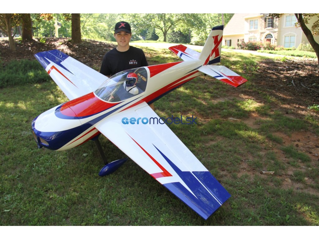 Sportovní polomaketa jihoafrického akrobatického letadla pro pohon benzínovým motorem 85-130 ccm pro zkušené piloty pro létání klasické přesné i extrémní 3D akrobacie.
