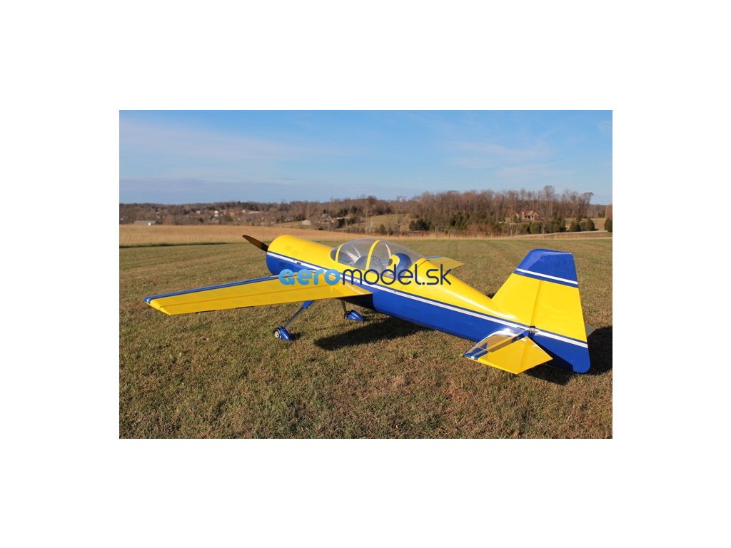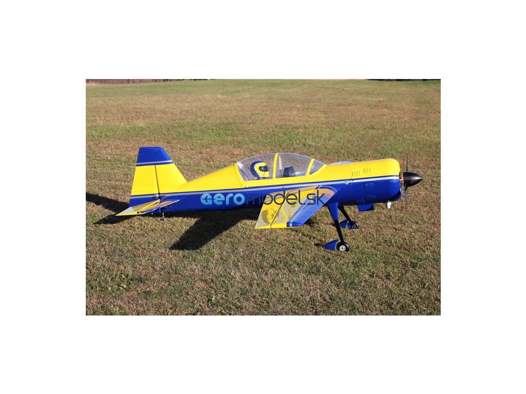 Sportovní polomaketa ruského akrobatického letadla pro pohon benzínovým motorem 85-130 ccm pro zkušené piloty pro létání klasické přesné i extrémní 3D akrobacie.