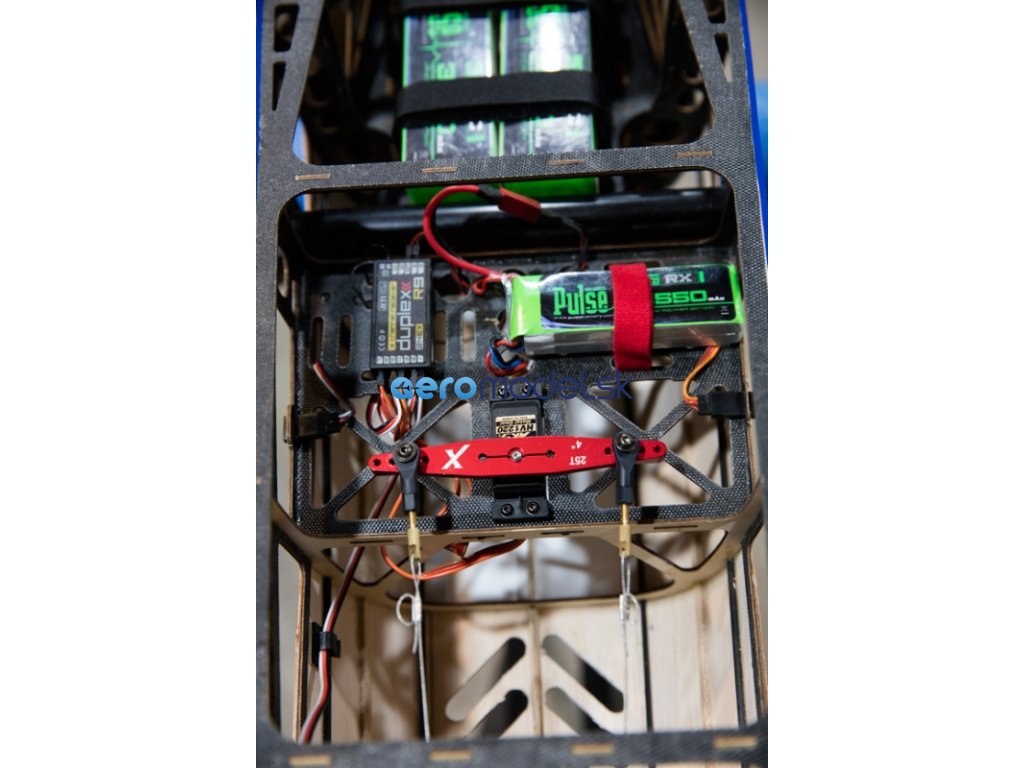 Pro ovládání modelu vyhoví nejméně šestikanálová počítačová RC souprava – možnost přesného nastavení „párových“ serv a naprogramování dvojích a exponenciálních výchylek ve správné velikosti je pro létání akrobacie – klasické přesné i extrémní 3D – zásadní.