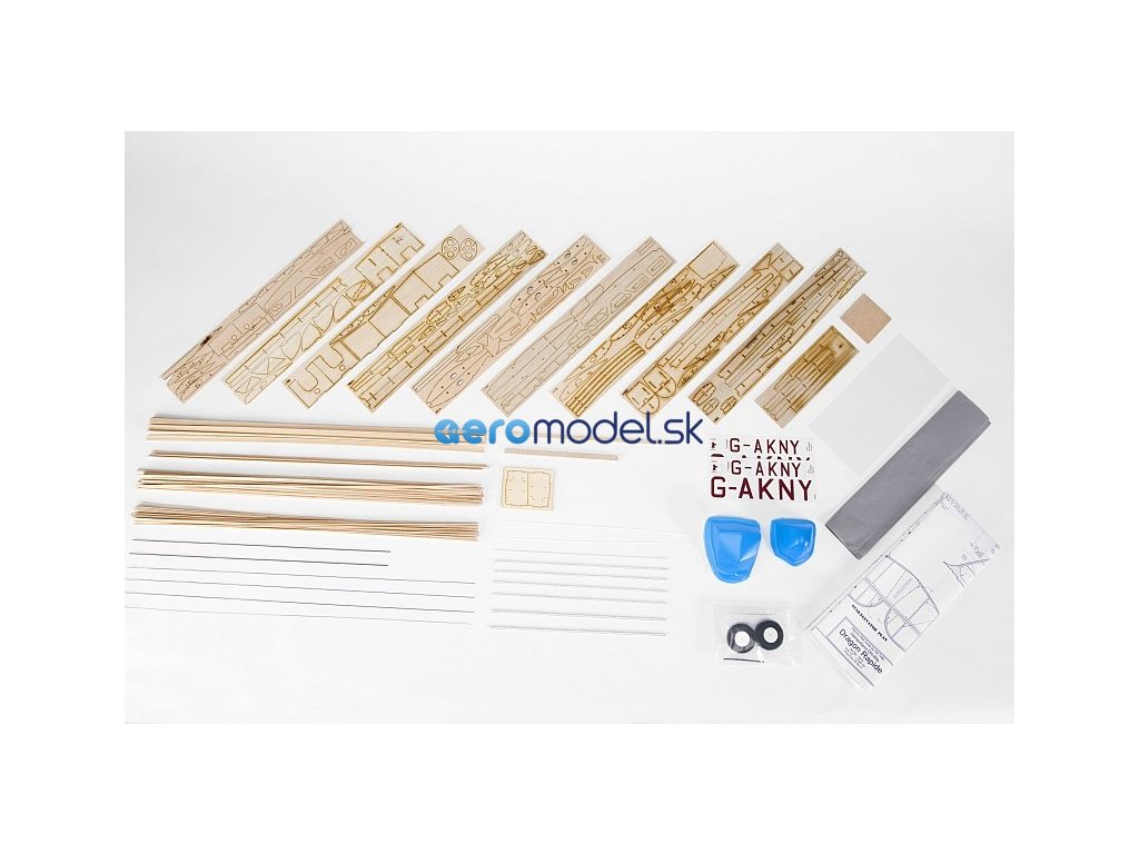 Stavebnice RC polomakety britského dopravního dvojplošníku určená pro pohon 2 elektromotory. Model je klasické celobalsové konstrukce v rozsypu s laserem vyřezávanými dřevěnými díly, maketovými doplňky z vakuově tvářeného plastu, plastovými díly zhotovenými vstřikovým lisováním a z kovu. Trup je konstruován běžnou minimaketářskou technologií z bočnic slepených z balsových nosníků, které spojíte polopřepážkami a příčkami do příhradového rámu. Výsledné tvary získáte po nalepení dalších dodatečných podélníků. Křídlo je klasické konstrukce z nosníků a žeber, ocasní plochy z balsových lišt a laserem vyřezávaných dílů. Drobnou "vychytávkou" je zhotovování obvodových dílů ocasních ploch z balsových pásků laminovaných za mokra. Získáte tak snadno překvapivě pevné a velmi lehké díly - a bez použití uhlíku! Výkresy potřebných šablon opět najdete v návodu. Celý model můžete potáhnout papírem dodávaným ve stavebnici nebo vhodnou lehkou nažehlovací fólií s malou smrštivostí, jako je Airspan nebo Litespan.