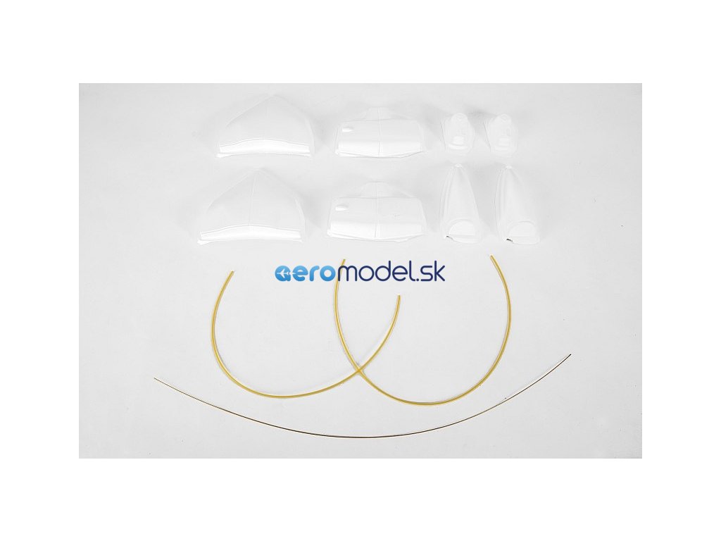 Stavebnice obsahuje: balsové laserem vyřezávané díly, balsové nosníky, vakuově lisované díly (kryty motorů, kryt kabiny...), ocelovou strunu na podvozek a další drobné díly, lehká pěnová kola, barevný potahový papír, aršík samolepek, stavební plán.