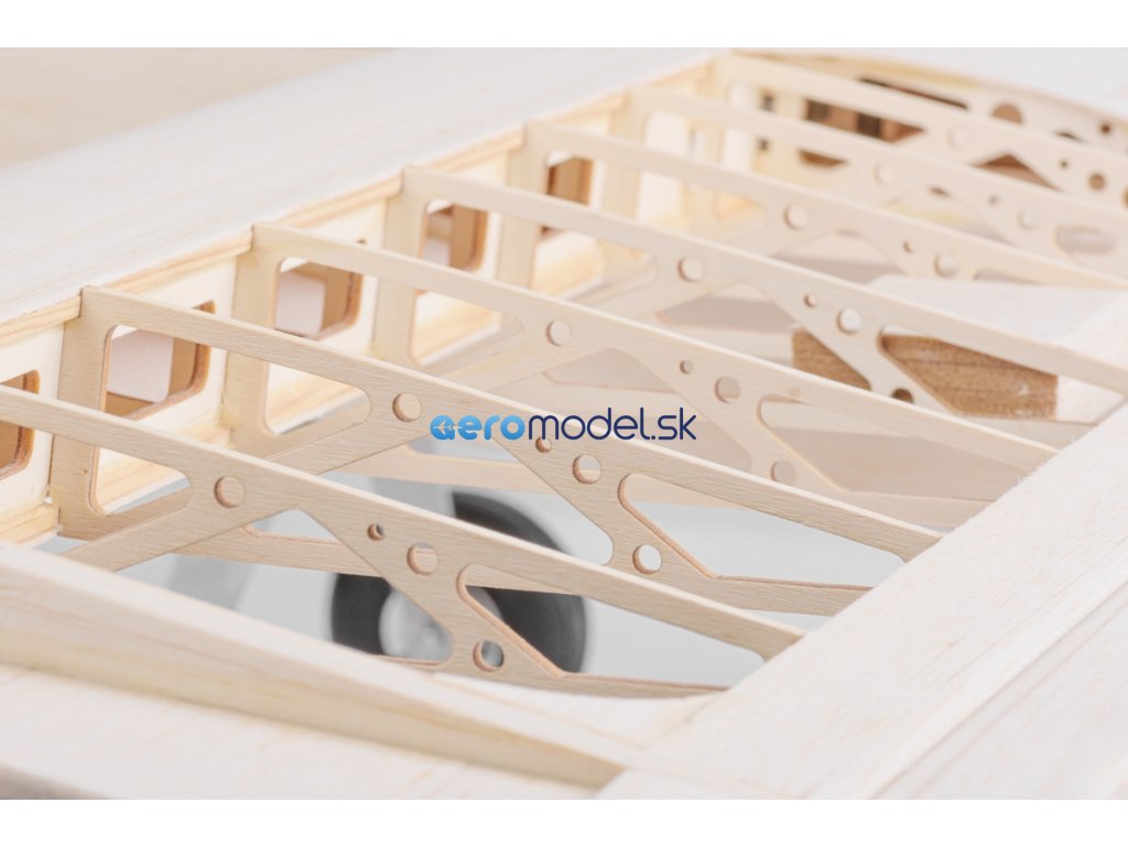 Jednodílné křídlo se souměrným profilem je klasické konstrukce s balsovými žebry a tuhým potahem torzní skříně. K trupu se upevňuje dvěma plastovými šrouby. Stavbu opět usnadňuje použití laserem vyřezávaných dílů se zářezy a výstupky v „puzzle“ stylu, díky níž sestavíte vše správně a nezkrouceně bez potřeby stavebních přípravků. Křidélka po celém rozpětí křídla jsou ovládána dvěma mikroservy s krátkými přímými drátovými táhly. Konstrukce křídla umožňuje táhla a páky křidélek umístit na spodní stranu křídla (vhodné pro létání s podvozkem) nebo na horní stranu křídla (vhodné pro létání bez podvozku s přistáním na břicho do trávy).
