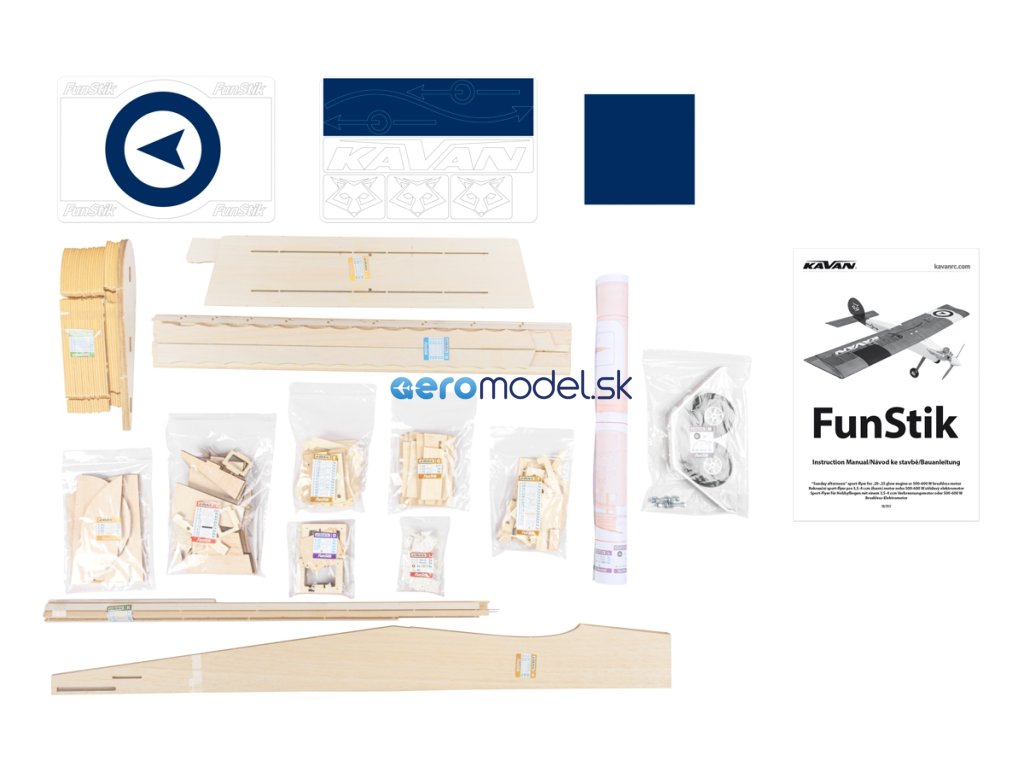 Je čas pro pořádnou zábavu! Rekreační akrobatický sport-flyer FunStik v retro „fokker-morane“ stylu vám umožní si pořádně zadovádět v dílně i na letišti. FunStik je ideálním projektem pro modeláře, který má již zkušenosti se stavbou jednodušších modelů v rozsypu a spolehlivě zvládá létání s hornoplošníky s ovládanými křidélky. Díky promyšlené konstrukci s laserem vyřezávanými díly opatřenými výstupky a zářezy, které do sebe zapadají jako díly puzzle skládačky, jde stavba velmi rychle a snadno. Ať už FunStik opatříte spalovacím motorem 3,5–4ccm nebo 500–600W střídavým elektromotorem, dostanete obratný a svižný akrobatický model, který vás jen tak neomrzí!