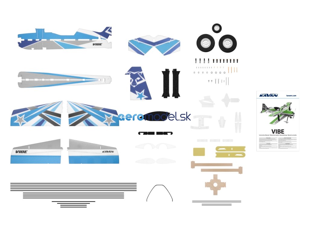 Stavebnice obsahuje: potištěné díly trupu, křídel, ocasních ploch a kryty podvozku vyříznuté z pěnového EPP, překližkové motorové lože, 3D tištěné plastové díly, uhlíkové výztuhy, páky, vidličky, táhla a další drobné příslušenství, uhlíkový podvozek s lehkými koly, podrobný obrázkový návod ke stavbě.