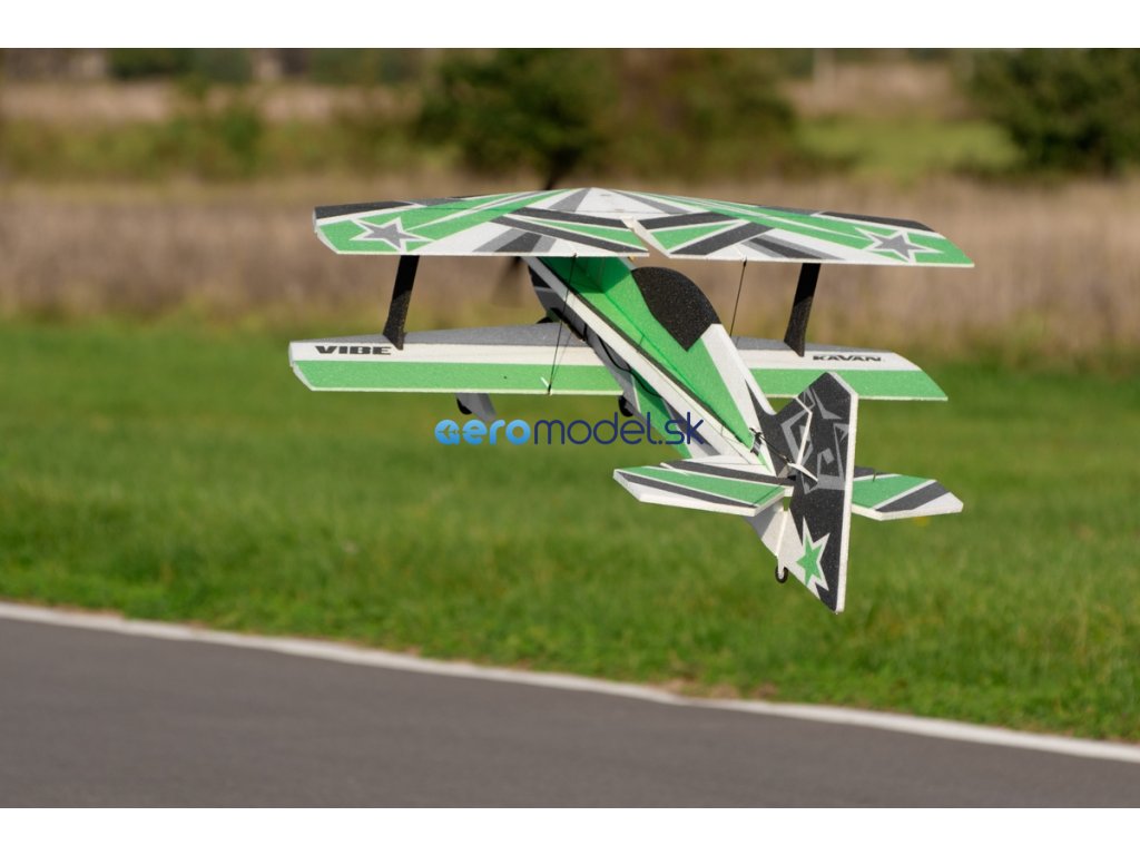 VIBE je vysokovýkonný dvouplošný 3D akrobatický speciál kategorie park-fly z pěnového EPP určený pro pohon střídavými elektromotory o výkonu 350-500 W. Pár hodin s vteřinovým lepidlem v ruce stačí pro dokončení tohoto modelu schopného létat obraty klasické F3A sestavy, stejně jako viset na vrtuli a provádět všechny ostatní 3D kousky! Je určen i pro méně zkušené piloty; s menšími výchylkami s ním může létat každý, kdo má již aspoň nějakou praxi s akrobacií a je schopen spolehlivě létat s předcházejícím modelem přemet, souvrat a výkrut. Díky nízké hmotnosti modelu případné havárie v důsledku „zapletení rukou“ příliš nebolí – a EPP díly se tak snadno opravují!