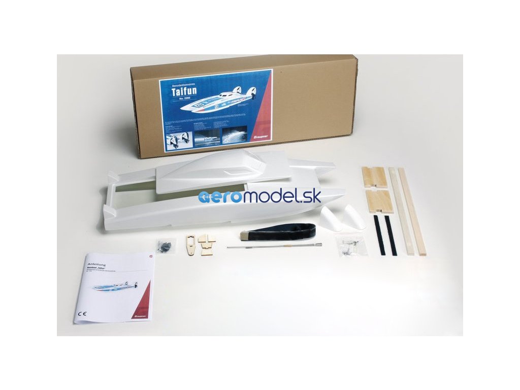 Model je vyroben výhradně z ručně barveného laminátu. Geometrie trupu obou plováků zajišťuje optimální přilnavost na vodní hladině, a to i při nejvyšších rychlostech. Otvory pro připojení dvou přívěsů jsou již k dispozici, všechny díly GFK jsou řezány do absolutní přesnosti. Struktura je tedy snadná a rychle dokončitelná. Součástí soupravy jsou podrobné ilustrované pokyny a přesně nařezaný obtiskový list. Model nabízí obrovský potenciál pro vlastní návrhy. Lze implementovat další jednotky. Stavebnice neobsahuje barevné obtisky/samolepky.