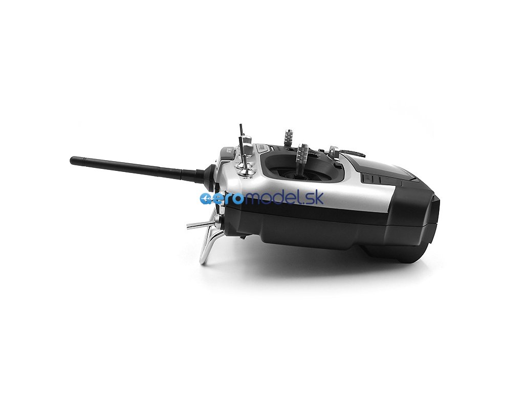 Ovládací prvky: Pro ovládání hlavních funkcí slouží přesné křížové ovladače s nastavitelnou silou neutralizačních pružin a možností přesunutí aretované osy pro plyn vlevo nebo vpravo. Díky tomu můžete libovolně volit provozní módy křížových ovladačů 1-4. Páky ovladačů mají nastavitelnou délku, můžete také dokoupit dlouhé hliníkové hlavice (se závitem M3). Digitální trimy mají zvukovou signalizací krokování a grafické zobrazení poloh na displeji. Jsou umístěny mírně excentricky a jsou snadno dosažitelné. Další proporcionální funkce mohou ovládat dva otočné ovladače na zadní straně vysílače a dva knoflíky umístěné ve středu nad hlavním vypínačem. 8 přepínačů (z toho tři třípolohové a jeden momentový dvoupolohový) může sloužit jako kanálové přepínače, pro přepínání letových režimů nebo zapínání/vypínání mixů. Ovládací prvky jsou volně přiřaditelné.