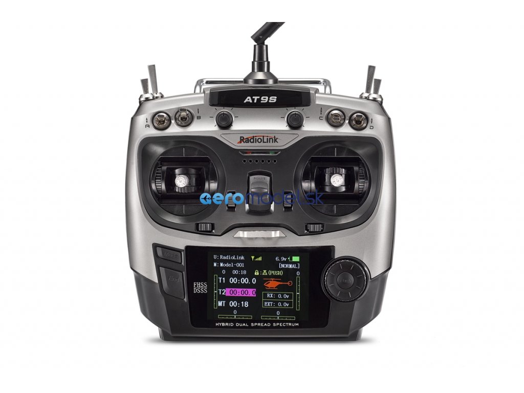 Přenosový systém: AT9S používá unikátní technologii Radiolink používající simultánní DSSS+FHSS přenos s frekvenčním přeskokem zajišťující velký dosah, spolehlivost a vynikající odolnost vůči rušení. Systém umožňuje přenos telemetrických dat z přijímače a jejich zobrazení na displeji vysílače.
