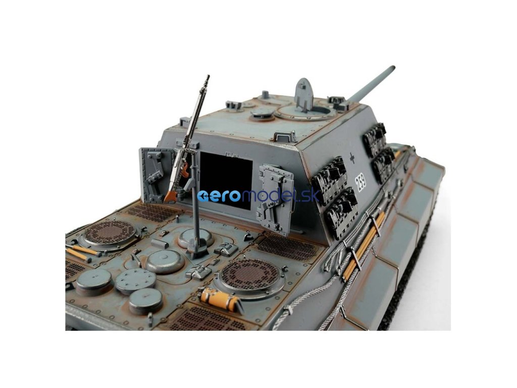 S hmotností kolem sedmi kilogramů je Jagdtiger ideální pro náročného zákazníka. V profesionální edici se vyznačuje vynikající kvalitou barvy airbrush, technologií desek plošných spojů 2,4 GHz a novým reproduktorem. Tento model má vynikající jízdní vlastnosti, širokou škálu funkcí a realistický zvuk. Vysoce kvalitní pásy, hnací a vodicí kola s válečky, stejně jako spodní část trupu a bojová věž jsou vyrobeny z kovu. Mnoho malých dílů a různých samolepek dokonale završuje repliku věrného měřítka.