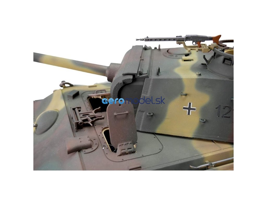 Výkonný model tanku má RC ovládání 2,4 GHz. Vozidlo je vybaveno BB Airosft systémem, takže jsou možné bitvy jako v reálném boji. Motory s optimalizovaným točivým momentem dodávají modelu Panther G přesnou a plynulou jízdu. Kovové převody s robustními převody a vylepšeným převodem zajišťují větší výkon. Díky proporcionálnímu ovládání se můžete s tankem přiblížit velmi pomalu a plynule zvyšovat rychlost. Panther G se pohybuje dopředu a dozadu, také s otočením doleva a doprava. Lze jej také na místě otočit doleva nebo doprava. Můžete zvednout a spustit dělo a otočit věž o 320 stupňů. Realistický zážitek završují různé zvuky motoru a kouř z výfuku.