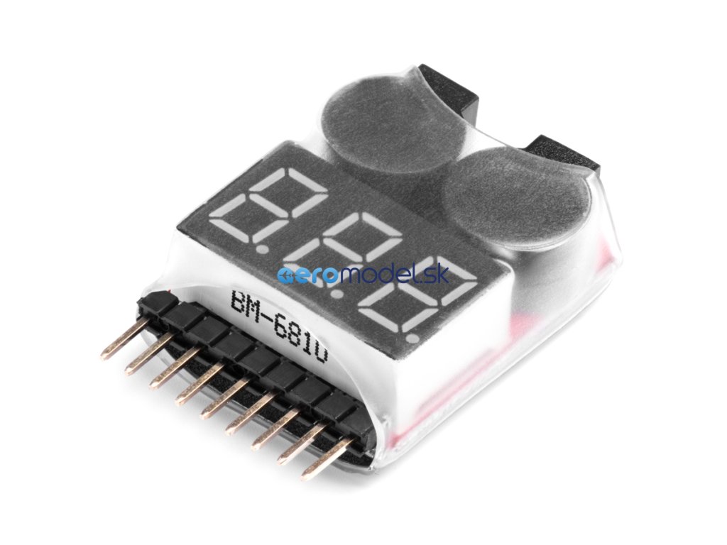 LiPo alarm 2-8S je miniaturní digitální voltmetr s třímístným LED sedmisegmentovým displejem schopný: