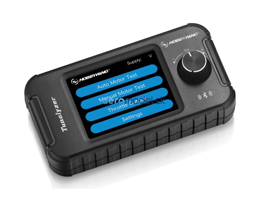 Tester střídavých elektromotorů Hobbywing Tunalyzer je elektronický přístroj speciálně zkonstruovaný pro měření parametrů, jako je počet otáček na volt („KV“), otáčky motoru, měření proudového odběru, měření časování (průměrné hodnoty i jednotlivých fází), kontrola funkcí Hallových senzorů střídavých motorů. Naměřené hodnoty pro střídavé motory se snímači i bez snímačů jsou zobrazovány na dotykovém LCD displeji. Tunalyzer také pracuje jako servotester a díky vestavěnému Bluetooth umožňuje nastavování regulátorů otáček Hobbywing a aktualizaci jejich firmwaru s pomocí mobilní aplikace HW Link.