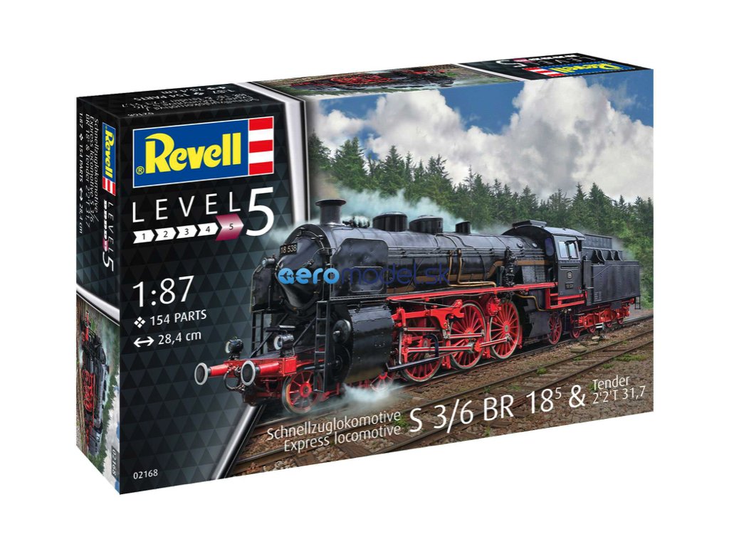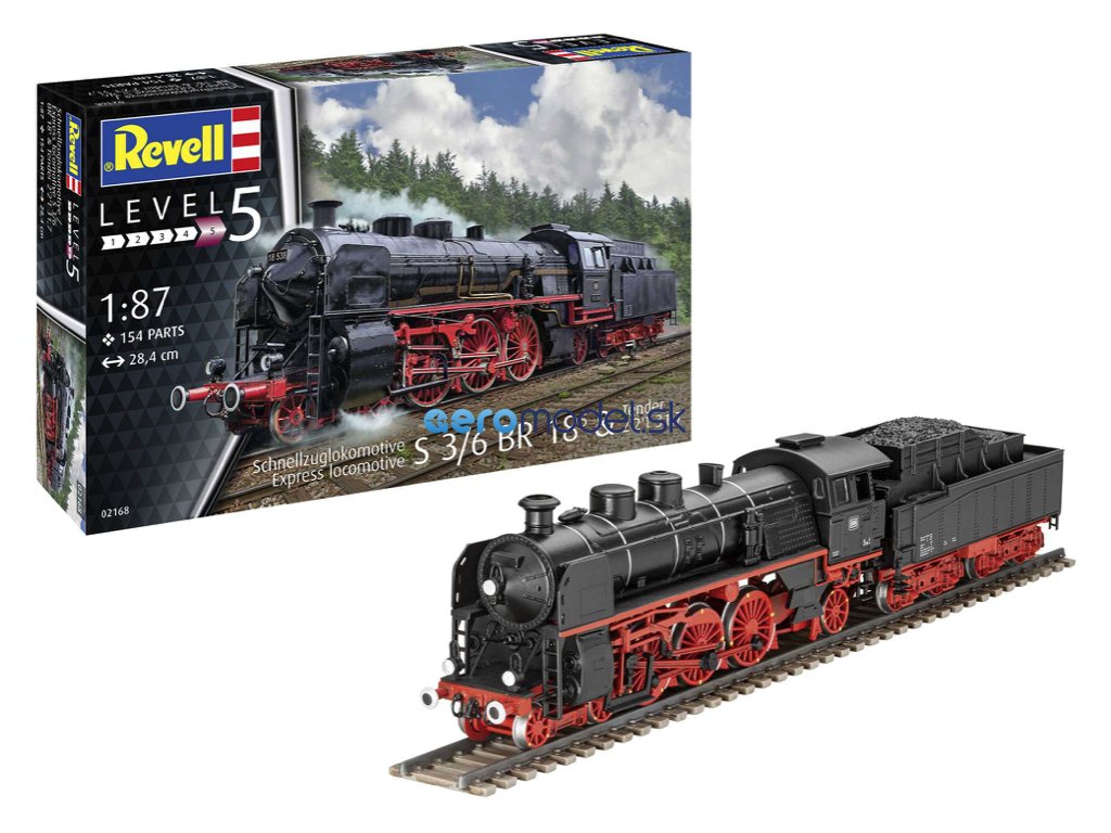 Plastikový model lokomotívy Express locomotive S 3/6 BR18 (5) with tender 2'2'T v mierke 1:87 spoločnosti Deutsche Bahn (DB). Zostavený model má dĺžku 28,4cm. Model má úroveň obtiažnosti 5, čo znamená, že je perfektné spracovaný každý detail, preto obsahuje malé dieliky a je vhodný pre pokročilých modelárov.