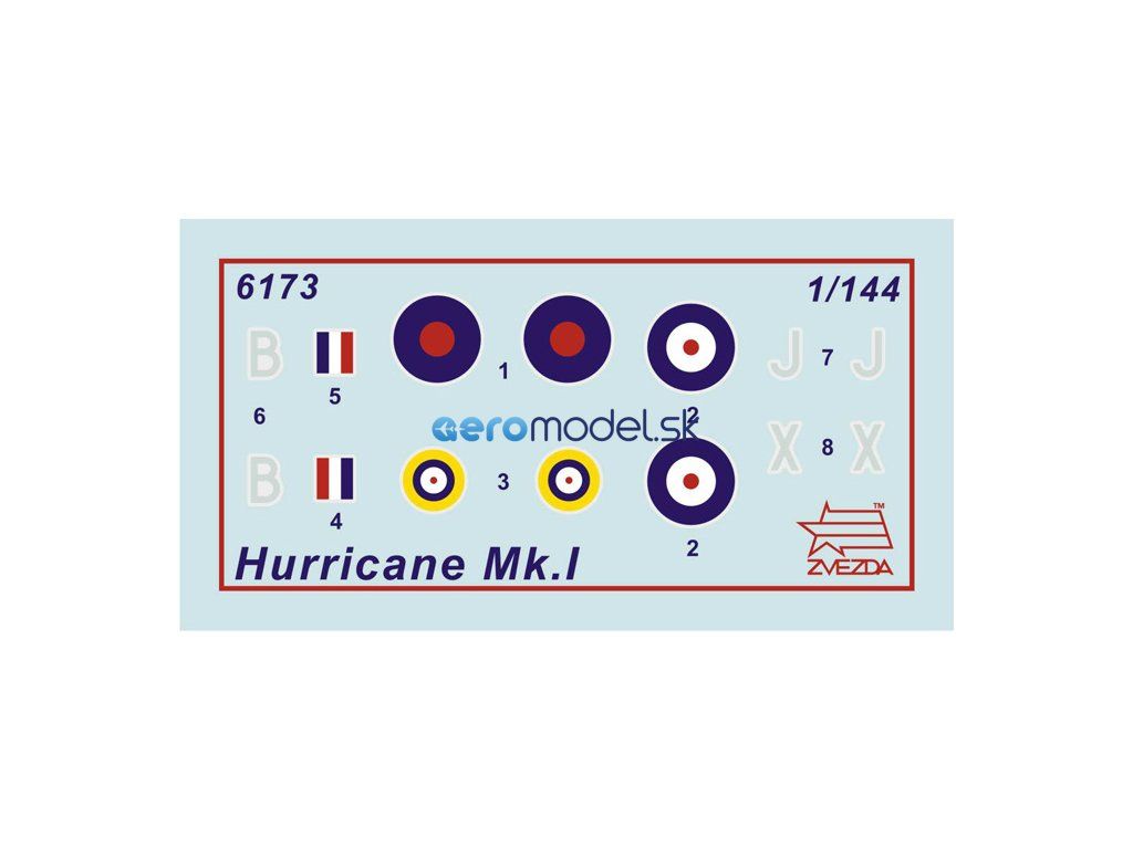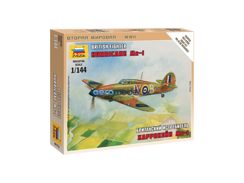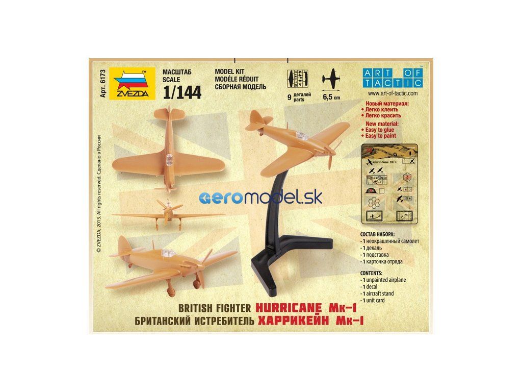 Plastikový model Zvezda 6173 - britské stíhacie lietadlo Hawker Hurricane Mk-1 v mierke 1:144. Stavebnica obsahuje 9 dielov, dĺžka 65 mm, obtiažnosť 3.