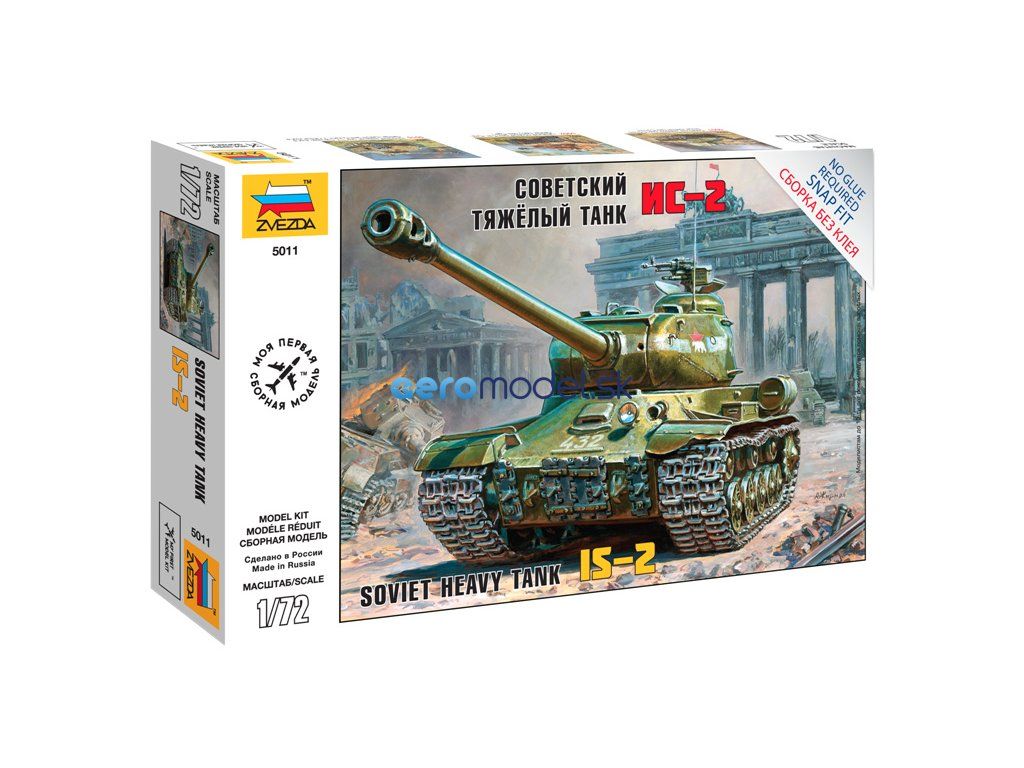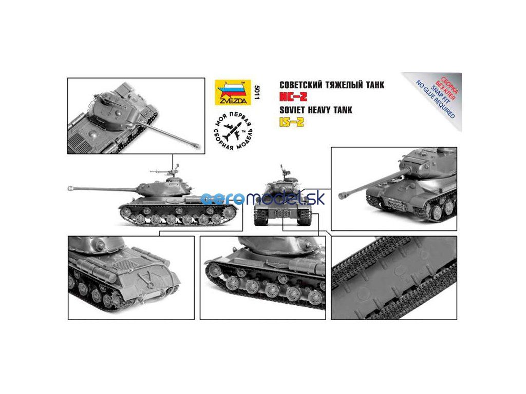 Plastikový model tanku Zvezda 5011 - IS-2 v mierke 1:72. Sada obsahuje 118 dielikov, dĺžka 138 mm, obtiažnosť 3.