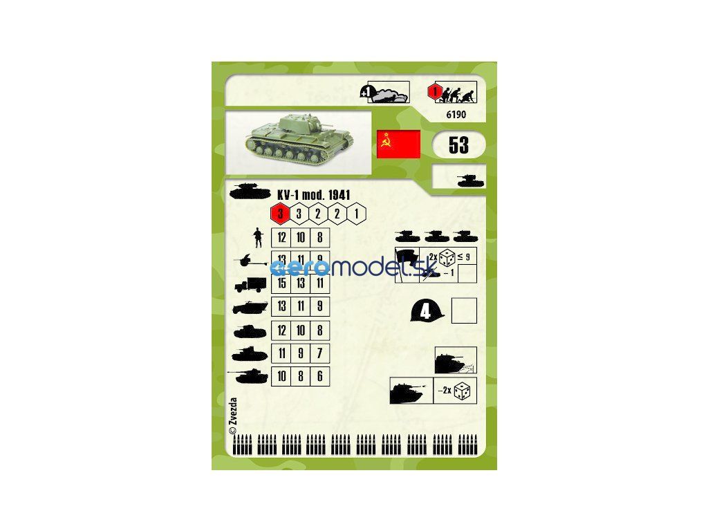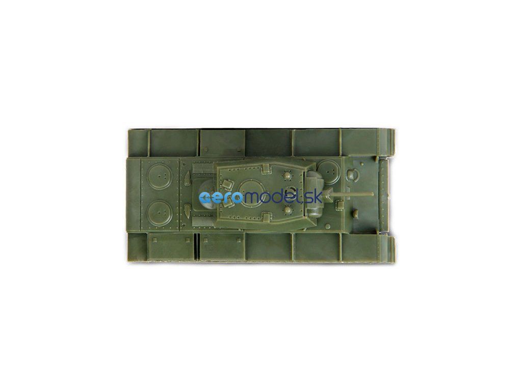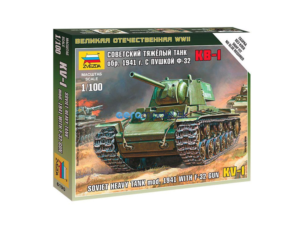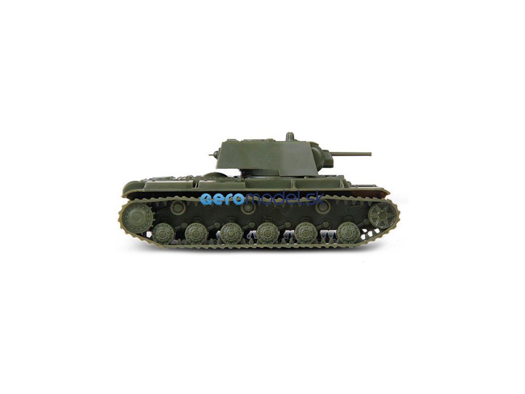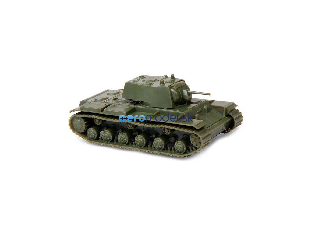 Plastikový model Zvezda 6190 - sovietsky ťažký tank KV-1 s F-32 v mierke 1:100. Sada obsahuje 6 dielov, dĺžka 68 mm, obtiažnosť 3.