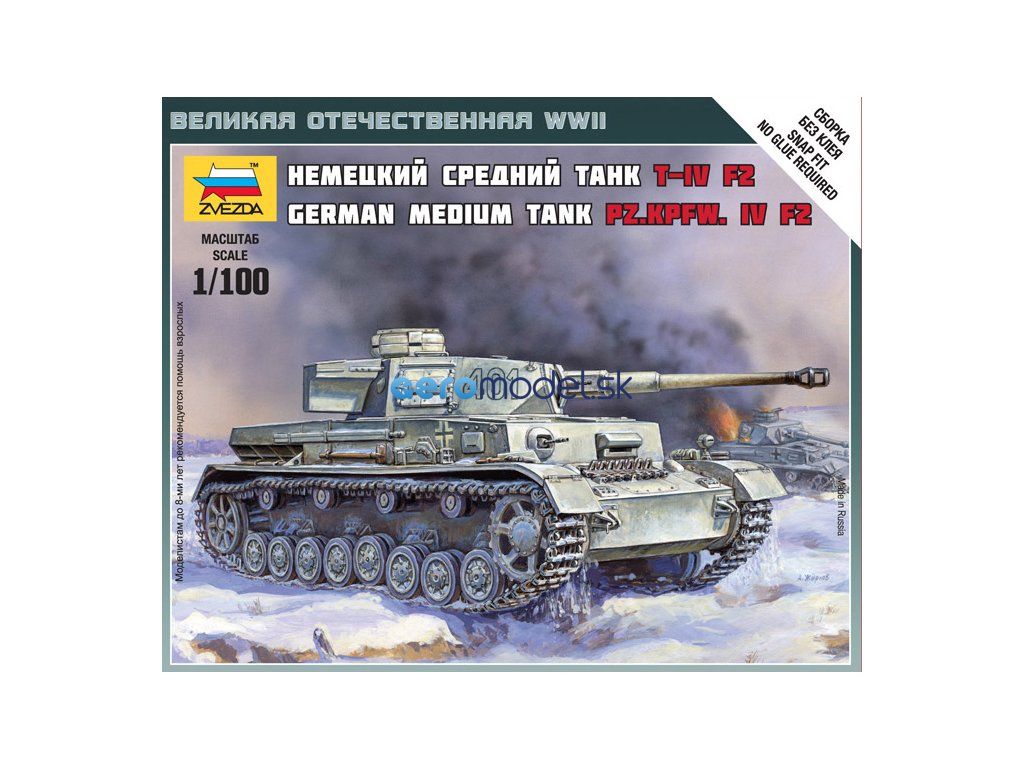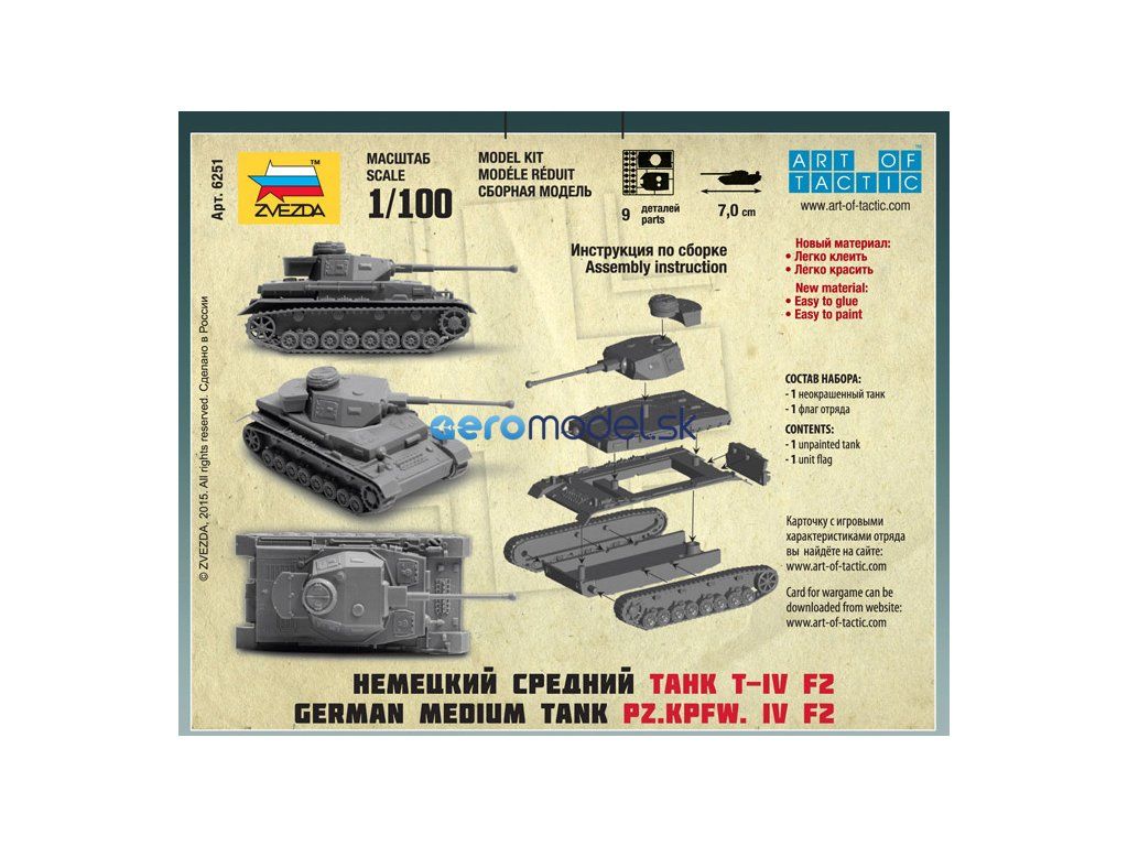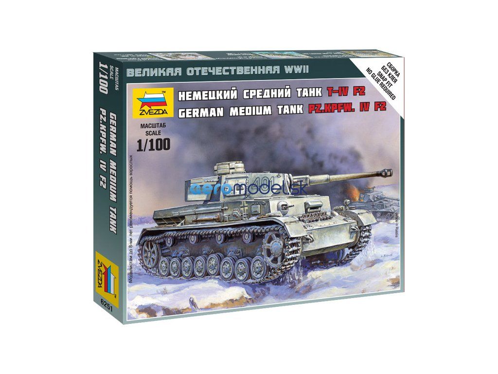 Plastikový model tanku Zvezda 6251 - Panzer IV Ausf.H v mierke 1:100. Stavebnica obsahuje 9 dielov, dĺžka 70 mm, obtiažnosť 2.