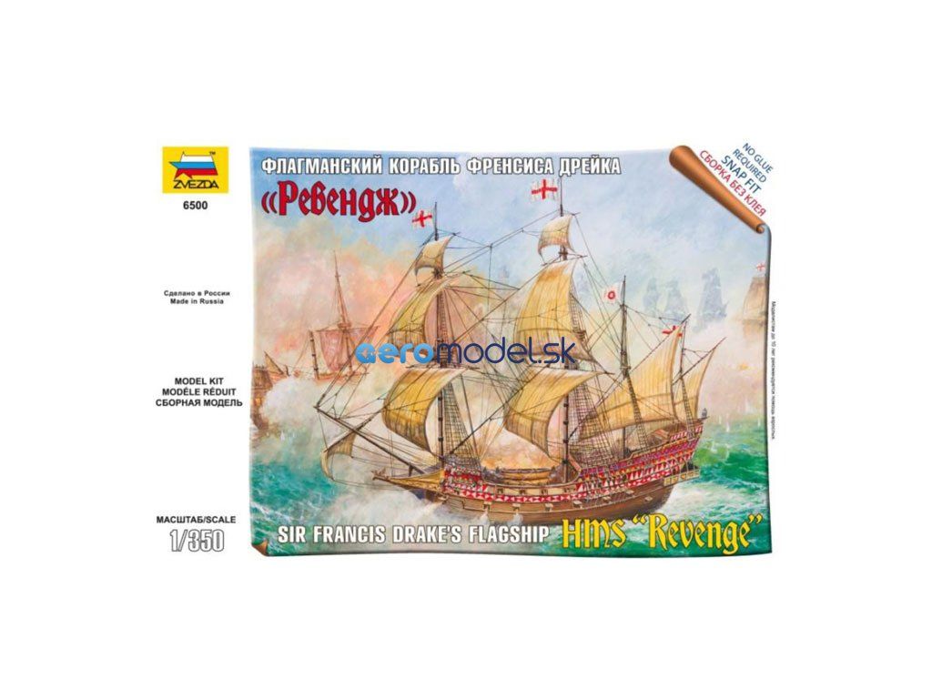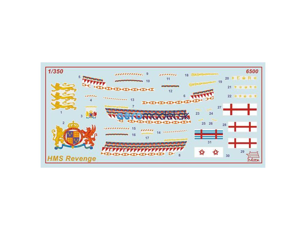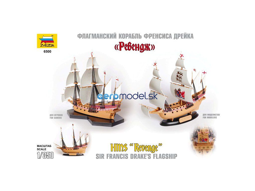 Plastikový model Zvezda 6500 - anglická loď Revenge v mierke 1:350. Sada obsahuje 79 dielikov, dĺžka 125 mm, obtiažnosť 3.