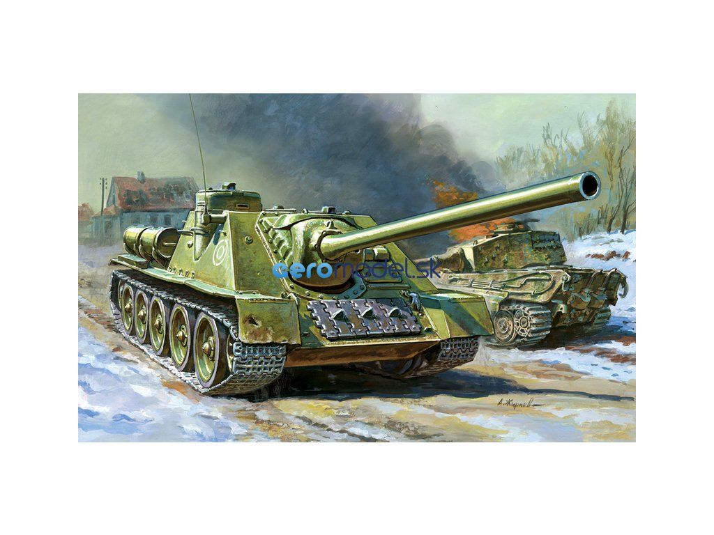 Plastikový model Zvezda 5044 - sovietsky stíhač tankov SU-100 v mierke 1:72. Sada obsahuje 81 dielov, dĺžka 132 mm, obtiažnosť 3.