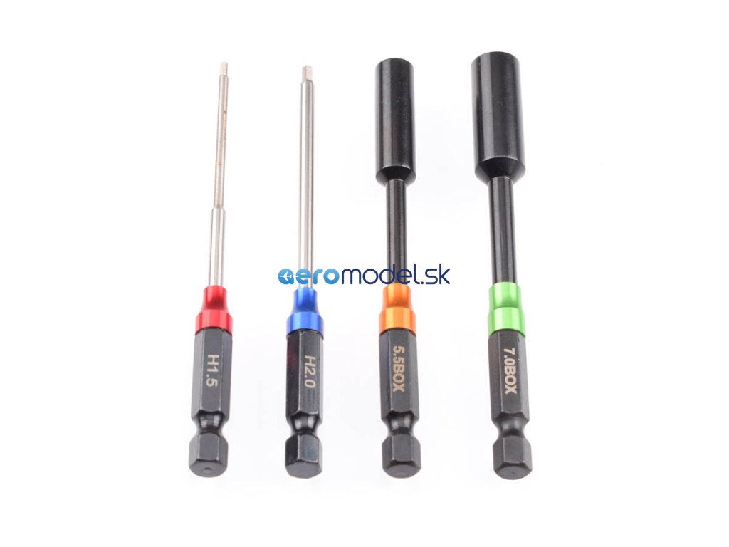 Sada klíčů RUDDOG je ideální sada pro všechny akumulátorové šroubováky. Díky standardnímu 1/4palcovému nástavci se hroty hodí pro všechny běžné akumulátorové šroubováky, což ještě více usnadňuje šroubování na vašem modelu. K dispozici jsou dvě sady: buď s šestihrannými hroty 1,5 mm, 2,0 mm, 2,5 mm a 3,0 mm, nebo jako sada s šestihrannými hroty 1,5 mm, 2,0 mm a 5,5mm a 7,0mm ořechovými hroty.