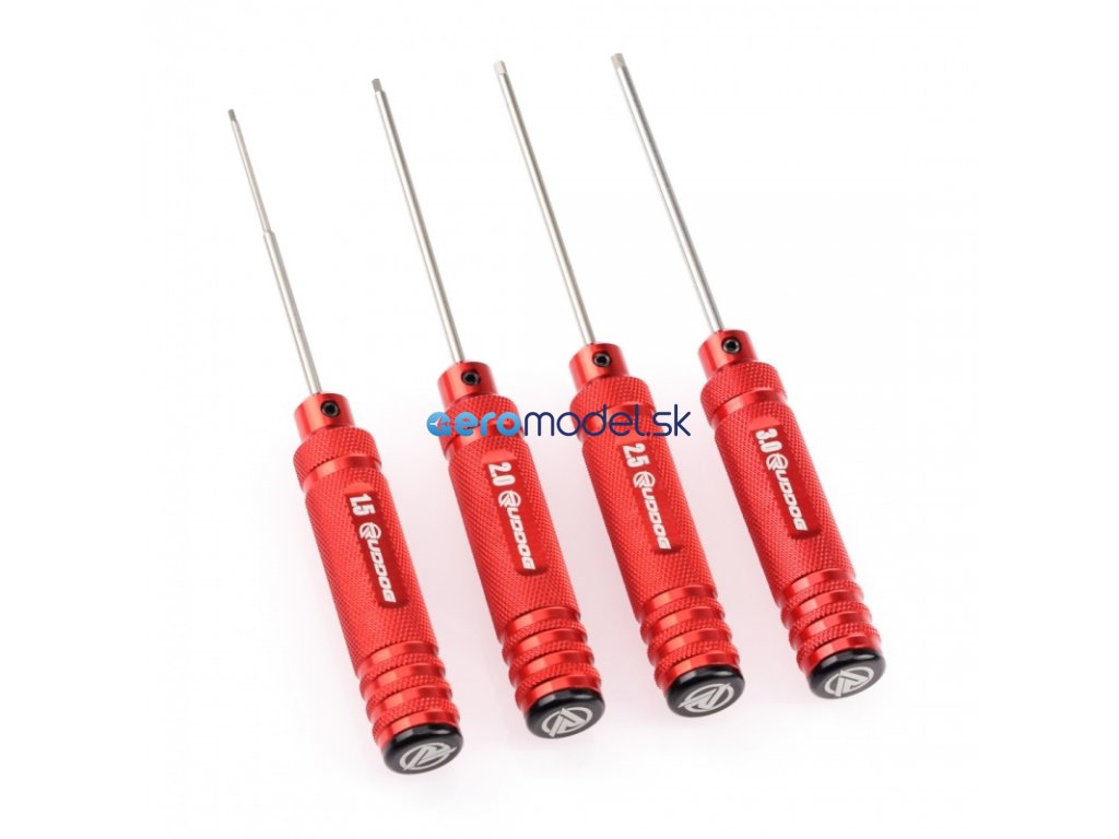 Stále se rozšiřující sortiment výrobků společnosti RUDDOG Products nyní zahrnuje praktickou sadu šestihranných/Imbus klíčů pro stavbu a údržbu modelů aut v měřítku 1:10 a 1:8 vybavených šestihrannými/Imbus šrouby. Ergonomické, červeně eloxované hliníkové rukojeti jsou pro snadnou identifikaci označeny příslušnou velikostí. Sada obsahuje čtyři běžné velikosti šestihranných/imbus klíčů a je cenově dostupná a kvalitní.