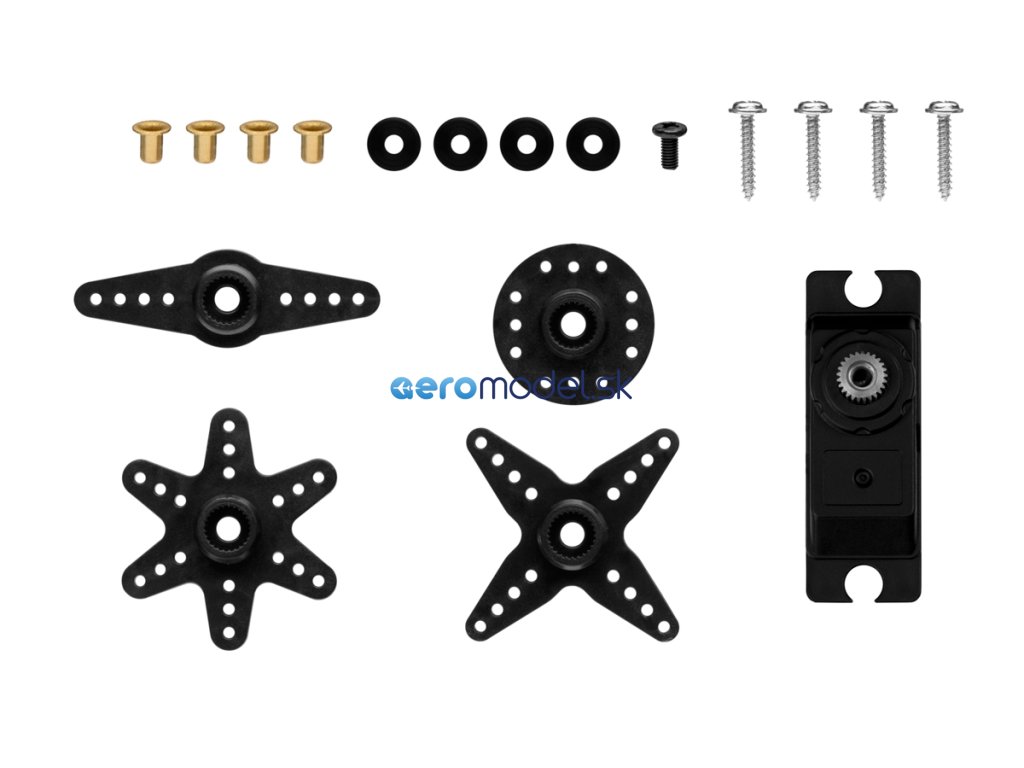 Silné a rychlé vodotěsné programovatelné digitální mikroservo s titanovými převody s výstupní hřídelí uloženou na dvou kuličkových ložiscích pro použití v terénních autech 1/16, robotech, lodích, menších modelech letadel vč. hydroplánů. Pro dokonalou ochranu proti vlivům okolního prostředí je servo uloženo ve vodotěsné/prachotěsné (dle standardu IP67) plastové krabičce.